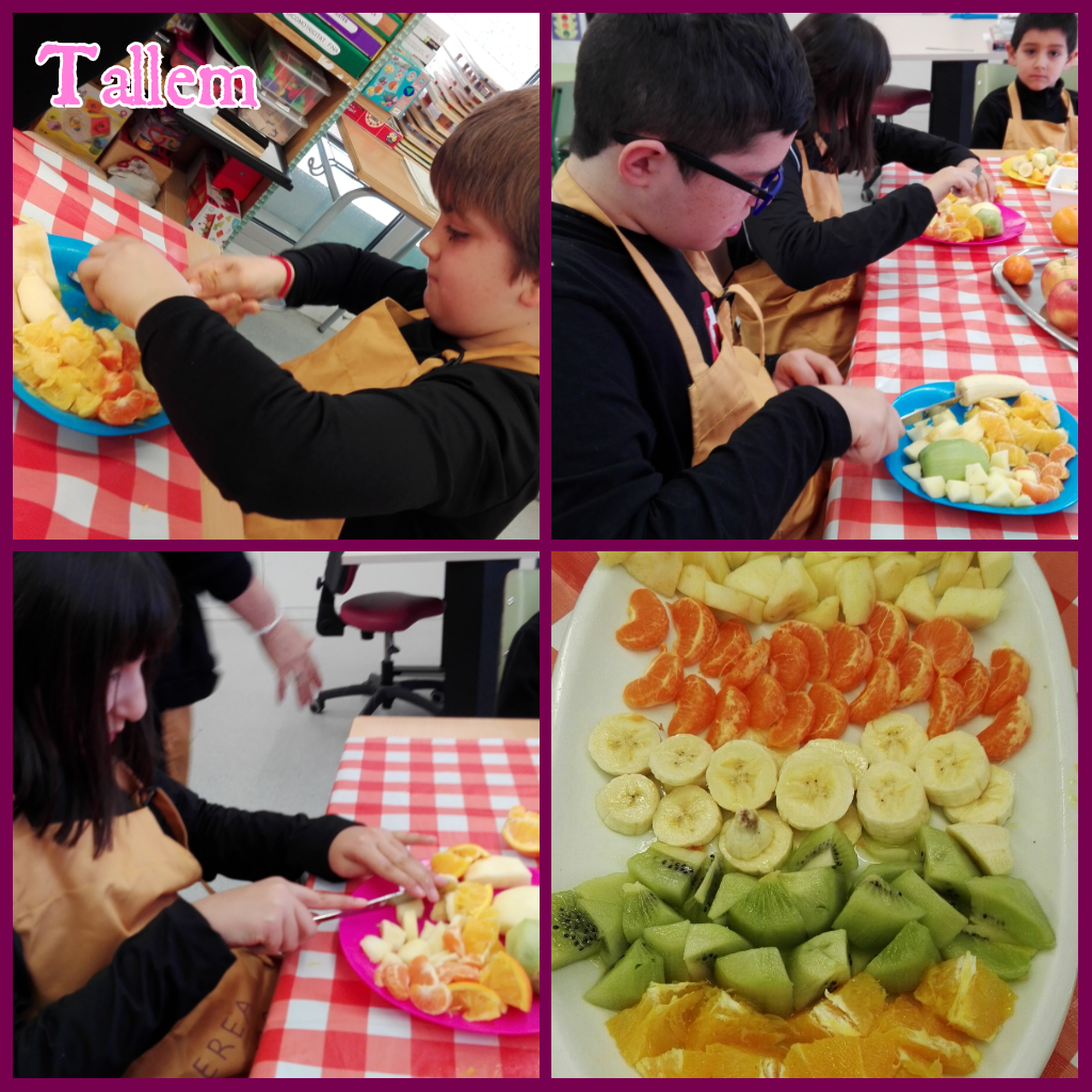 Aprofitant que aquesta setmana han portat fruita a l’escola hem fet una macedònia al taller de cuina.