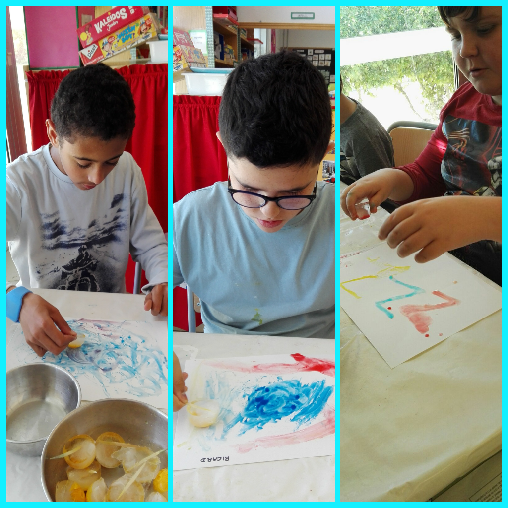 08/05/17Avui hem manipulat aigua en estat sòlid pintant amb gel i colorant alimentari. Han gaudit de l’experiència!
