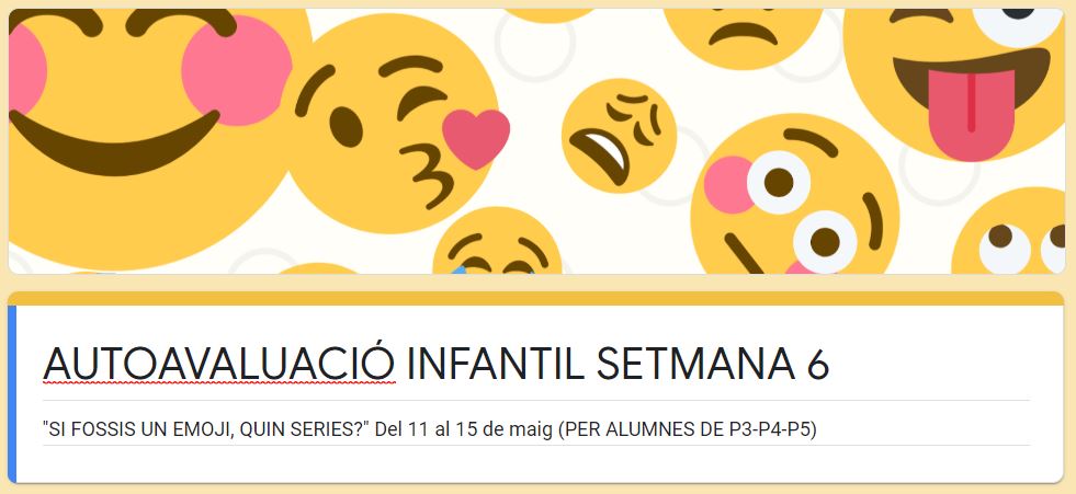 2. Contestar el FORMULARI. A més, ens agradaria que ens contesteu aquest FORMULARI (diferent de les altres setmanes) per saber diferents coses de l’activitat d’aquesta setmana.