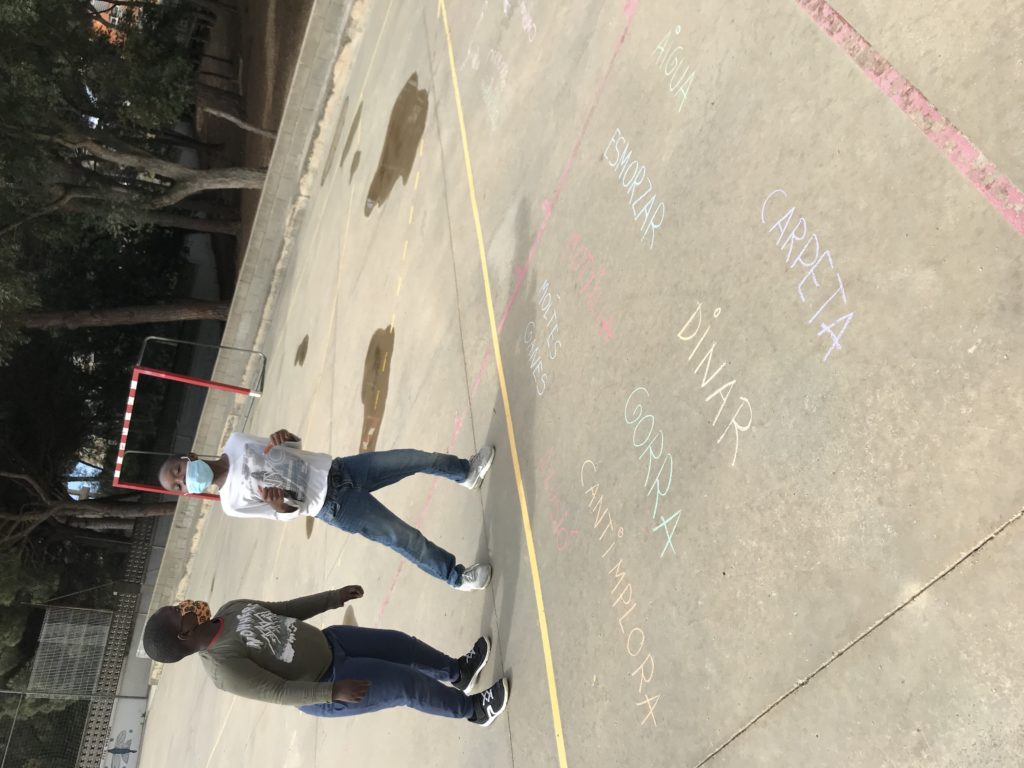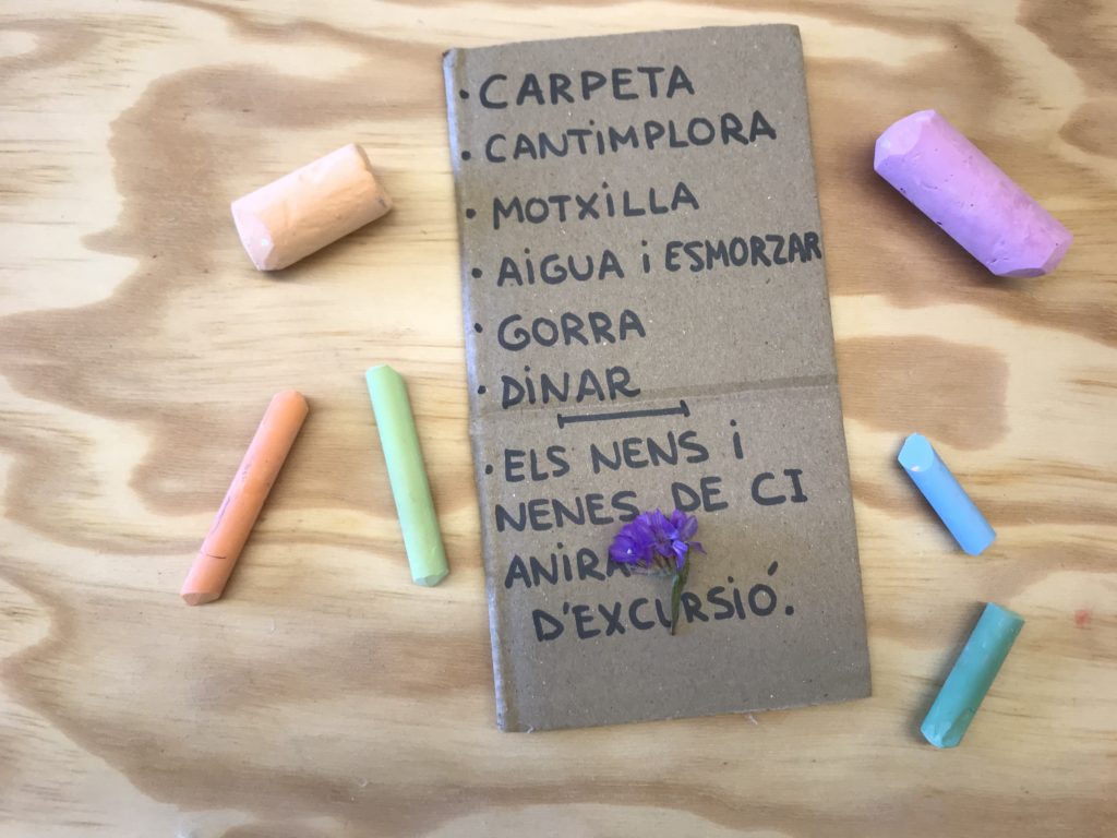a l’aula d’Educació Especial treballem el vocabulari de forma divertida i relacionat amb una excursió. D’aquesta manera ens anticipem, ens preparem i ens organitzem. Com ho fem? FEM DICTATS AL PATI AMB GUIXOS DE COLORS!