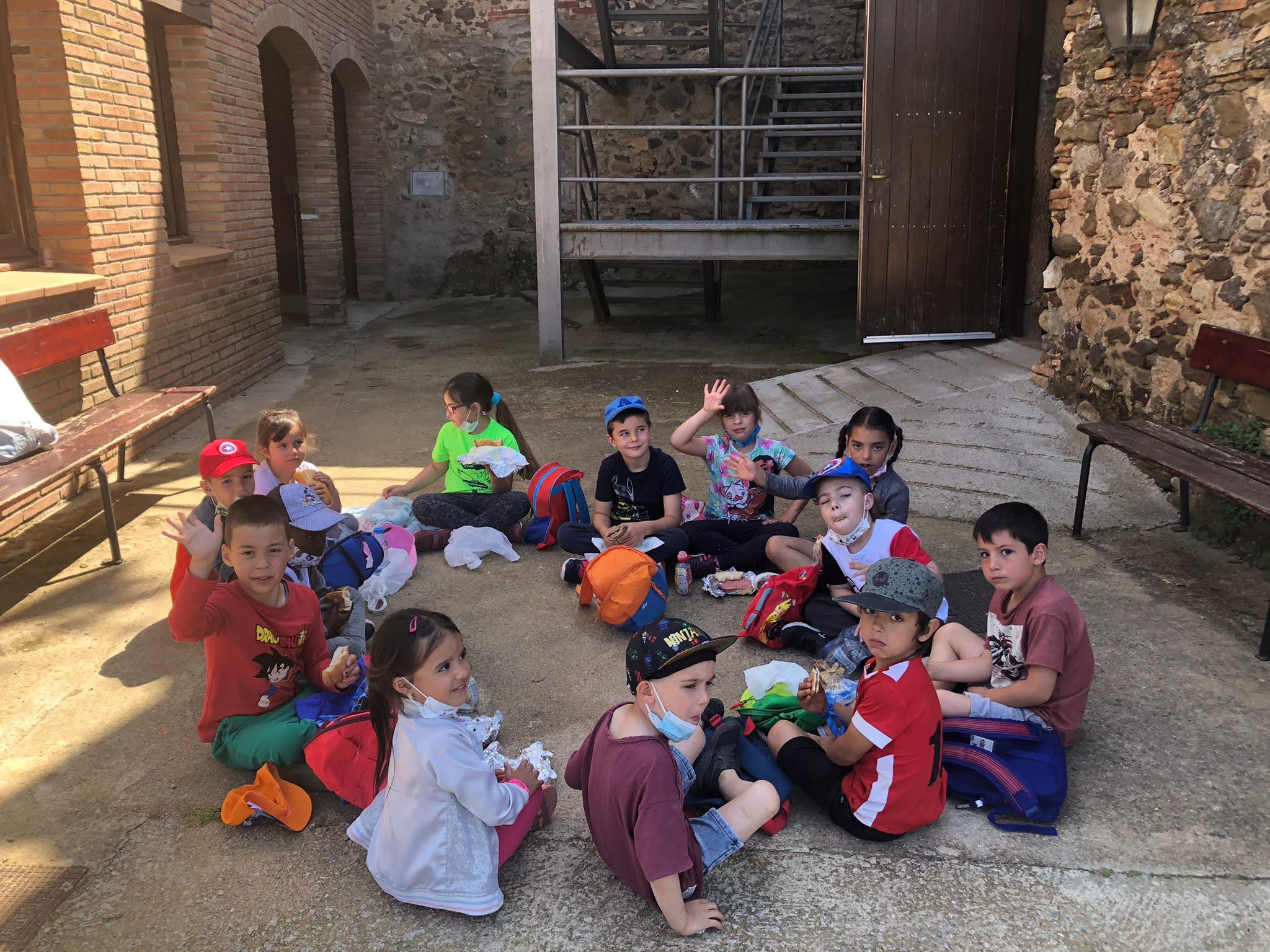 Els nens i les nens ja han arribat a la casa de colònies, estan esmorzant molt contents.