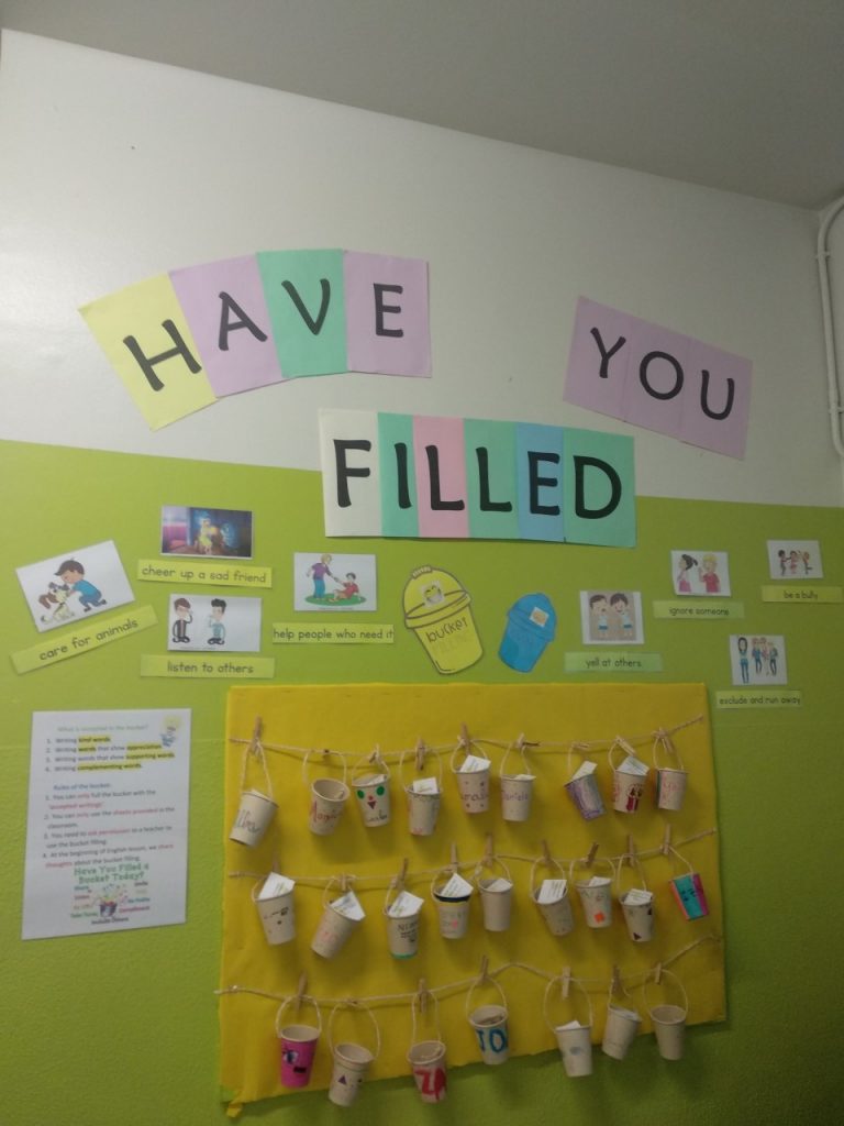 Els alumnes de 6è de primària, amb l’ajuda de la nostra auxiliar de conversa Mònica, hem començat el projecte “Have you filled a bucket today?“. Després de la lectura del llibre, ens hem decorat els nostres propis “buckets” i cada setmana ens els omplim de missatges positius.