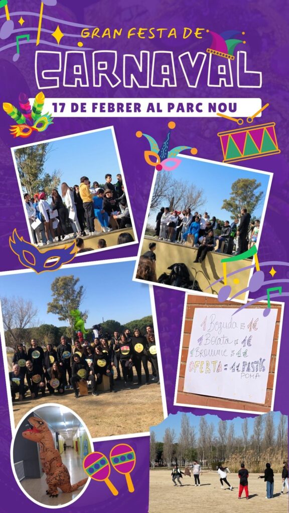 L’ESO va celebrar-ho pel matí amb una sortida al Parc Nou. Els alumnes de 4t van preparar l’esmorzar i els de 3r van amenitzar la vetllada amb una actuació a l’escenari que recollia totes les “chirigotes” treballades a classe. Després van tenir una estona de jocs amb música de carnaval.