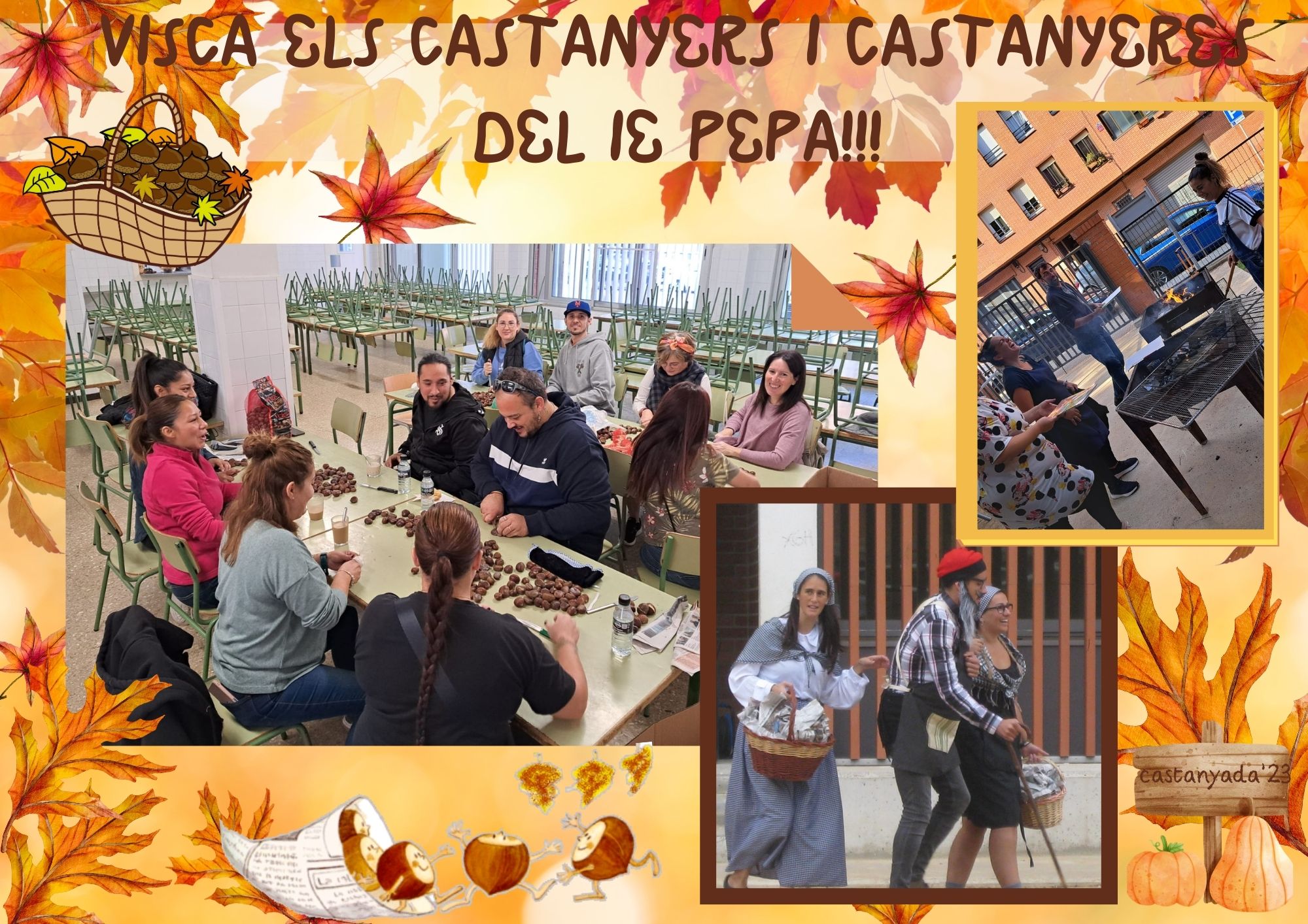 Volem agrair la col·laboració de l’AFA en la festa, què bones estaven les castanyes que ens han preparat, què agradables els castanyers i castanyeres que han vingut a repartir-les i què xulo el túnel del terror que heu organitzat!!!! Ha estat súper terrorífic!!!.