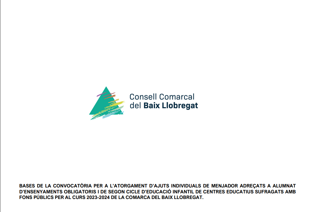 CONVOCATÒRIA AJUTS DE MENJADOR ESCOLAR BAIX LLOBREGAT 2023-2024