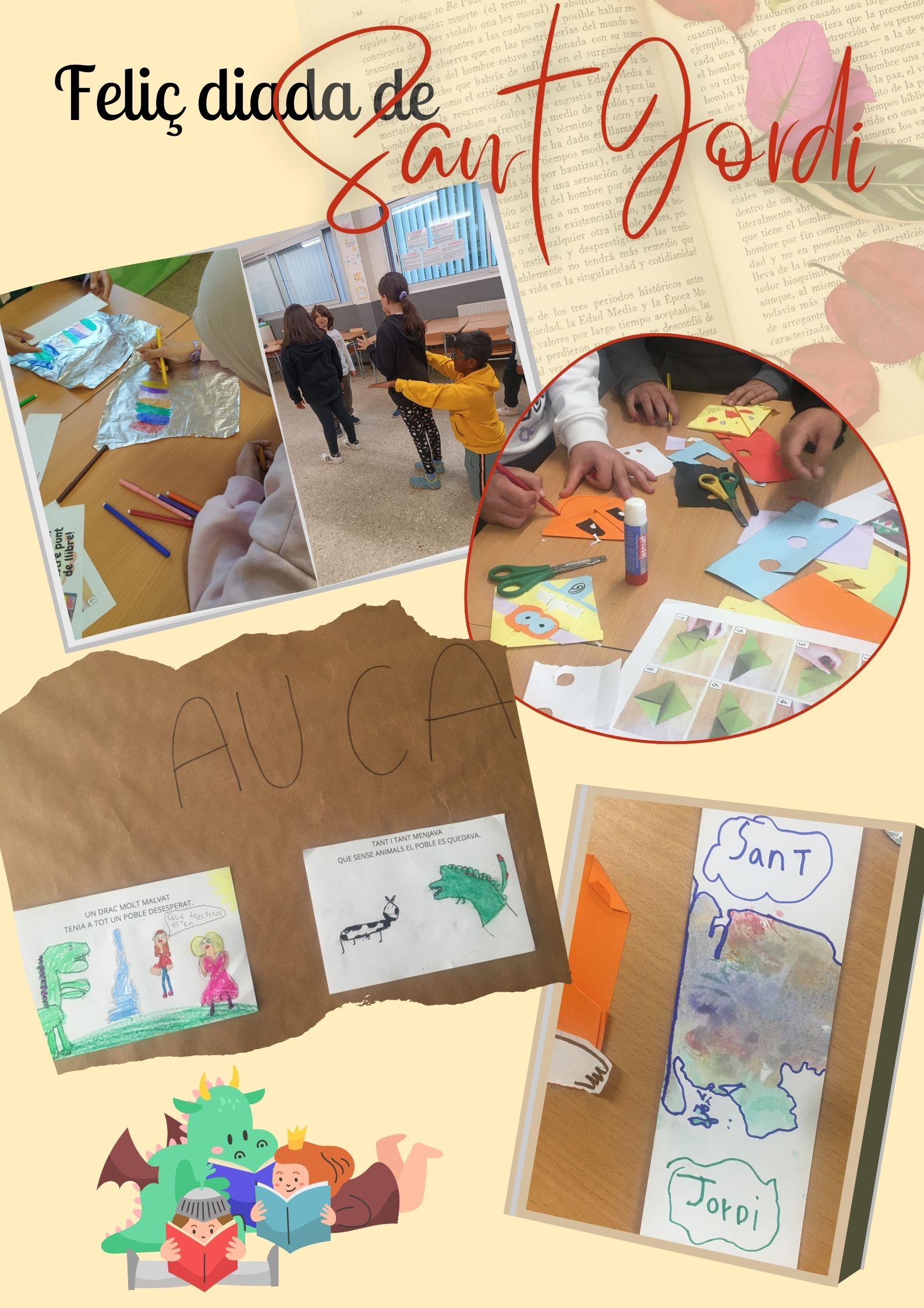 També van il·lustrar auques de la llegenda de Sant Jordi, el resultat de les quals està exposat a la sala d’actes i us animem a donar-hi un cop d’ull.