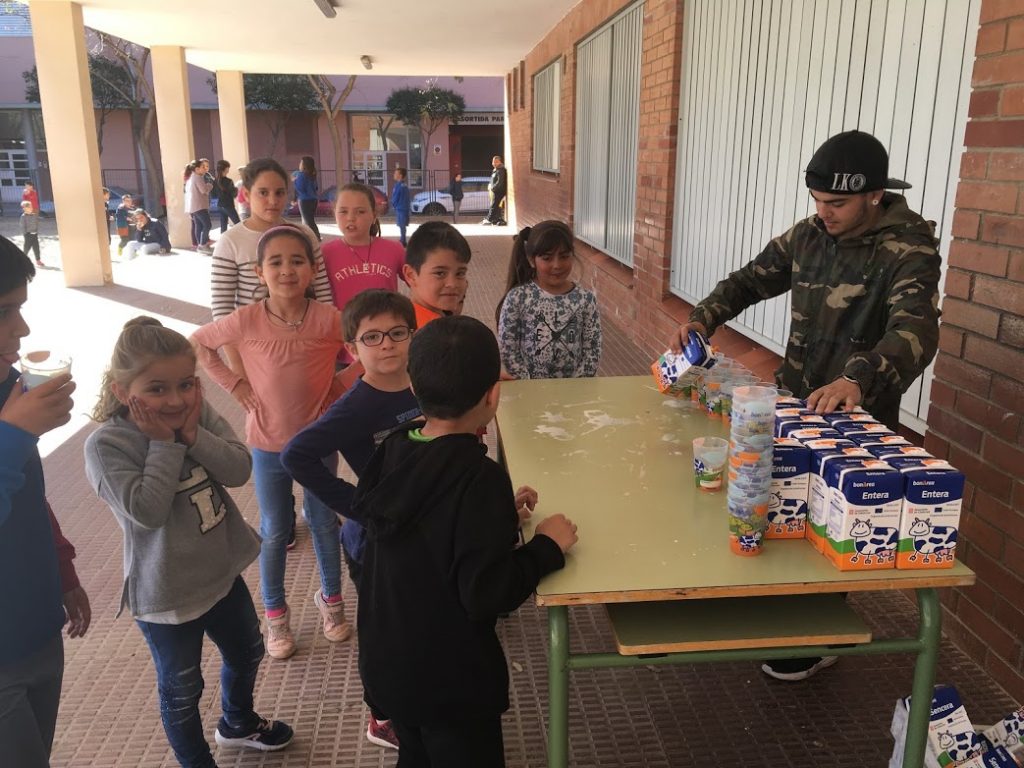 I gràcies també a tots els voluntaris que ens ajuden a repartir la llet, a l’hora del pati, per esmorzar i, a la tarda, per berenar!!