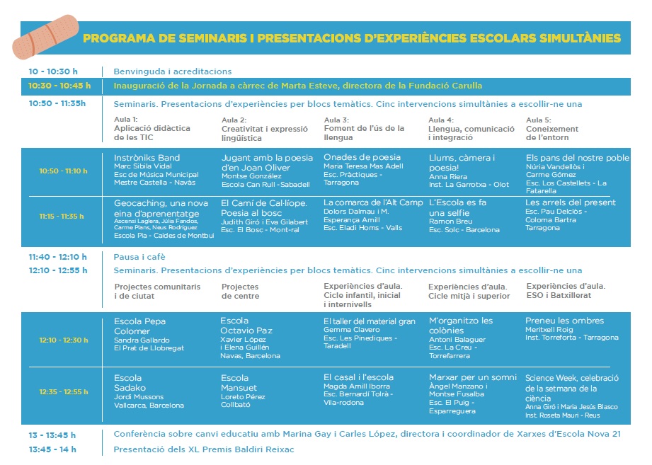 Després del lliurament dels 39ns Premis Baldiri Reixac, que han suposat un reconeixement i estímul a iniciatives educatives que contribueixen a la construcció d’una escola catalana de qualitat, la Fundació Carulla ha convocat la 6a Jornada PremisBaldiri Reixac 2017 amb el suport del Departament d’Ensenyament de Terres de l’Ebre, l’Ajuntament de Gandesa i la Societat Catalana de Pedagogia.