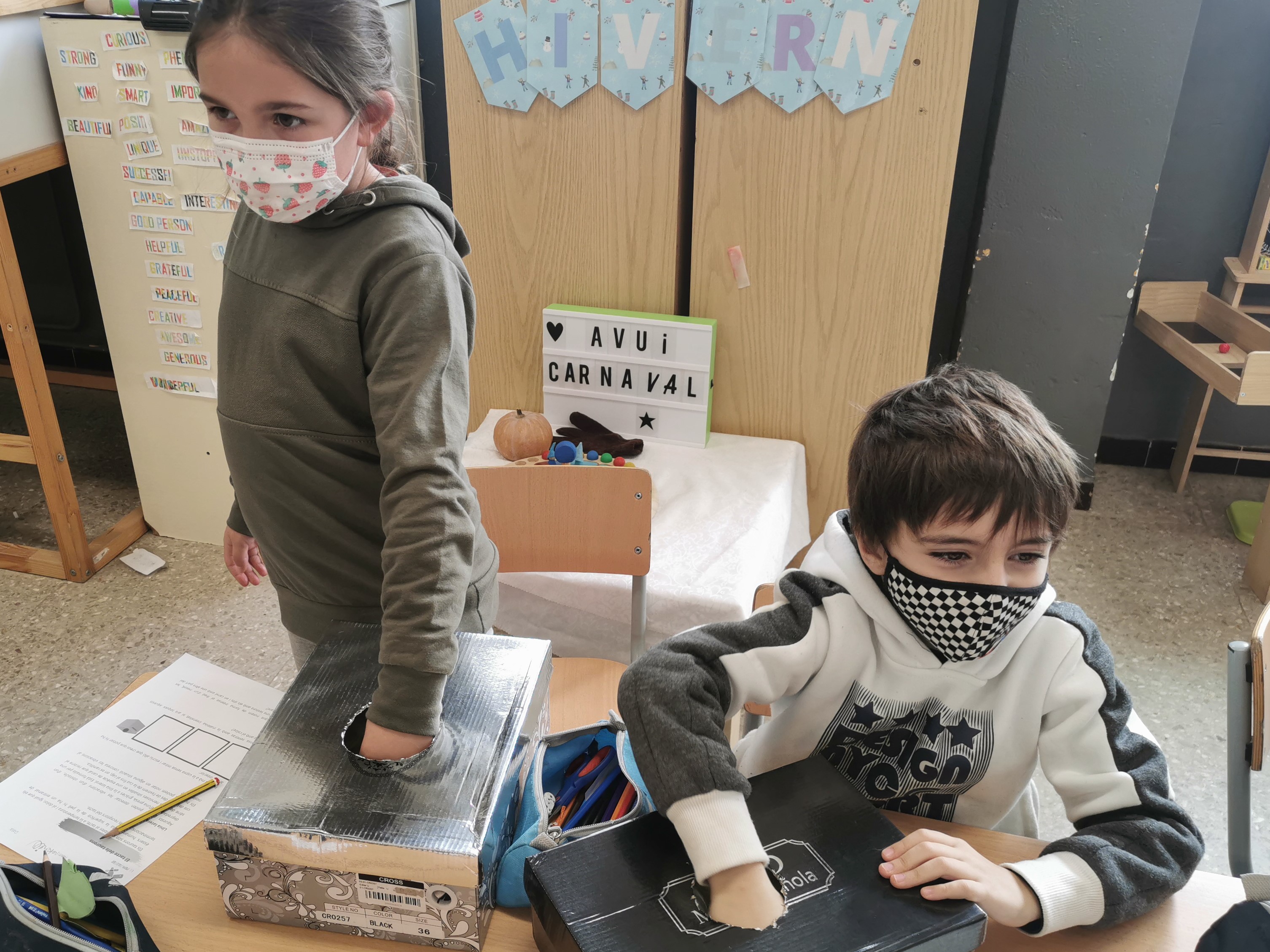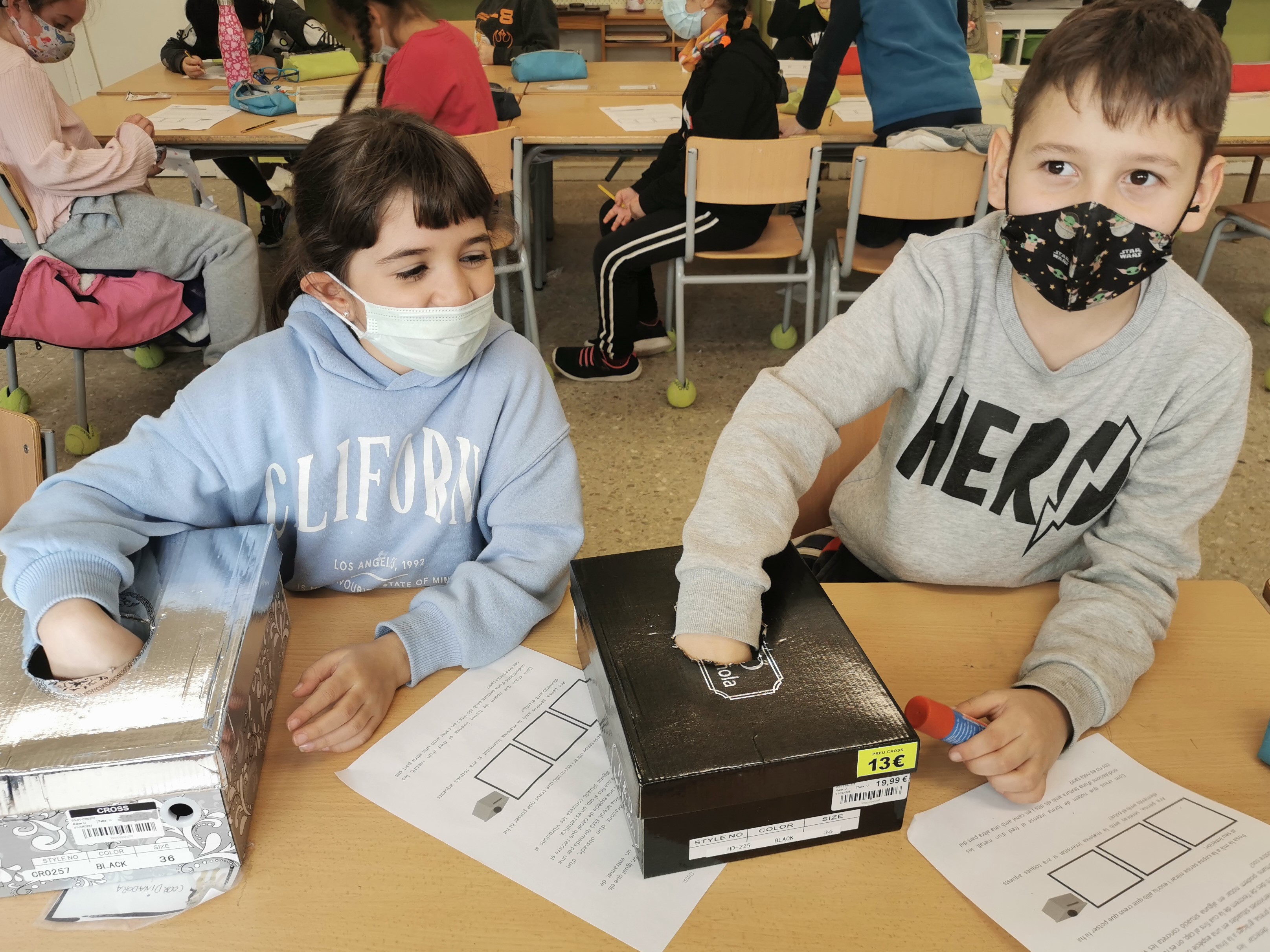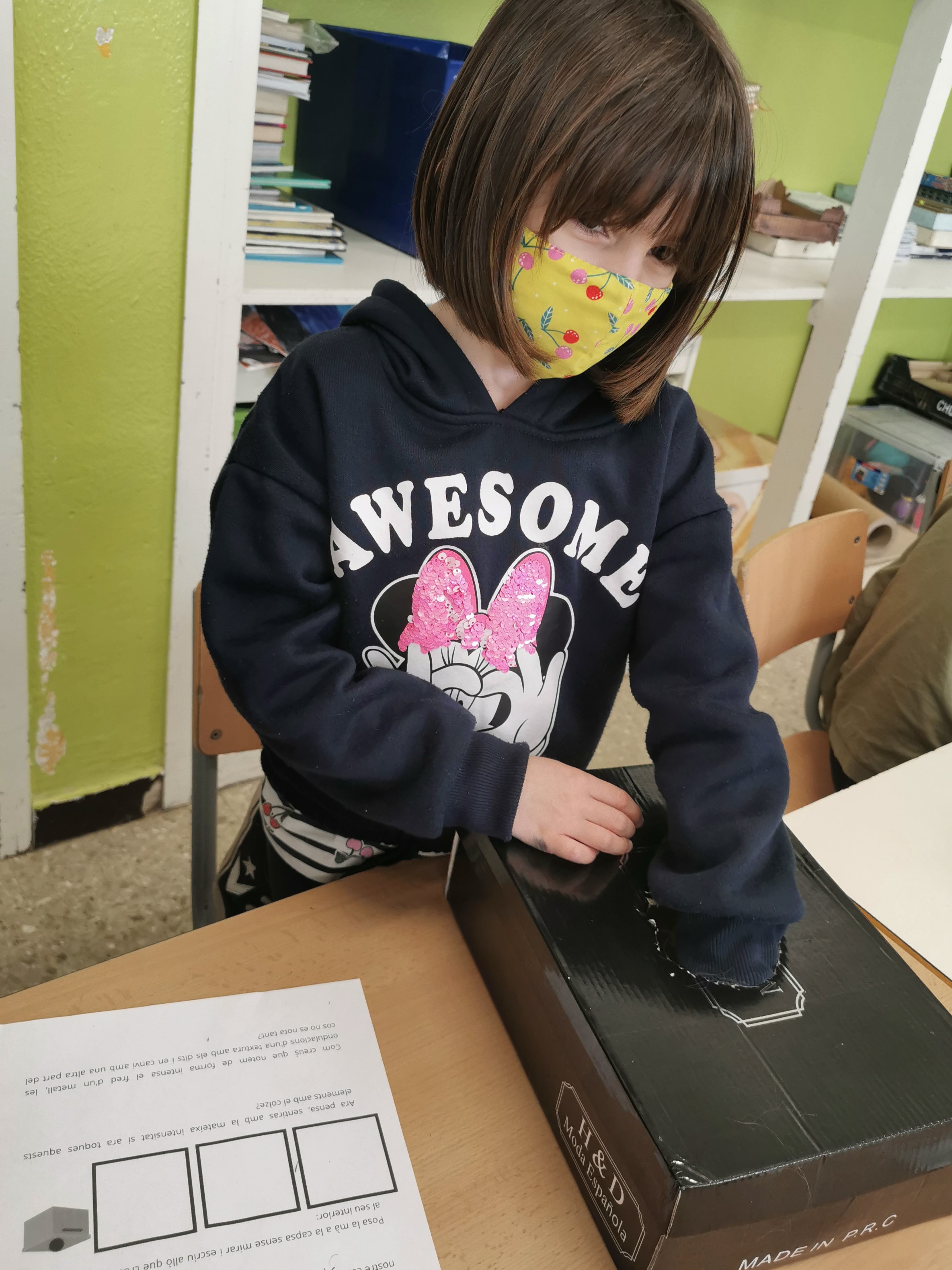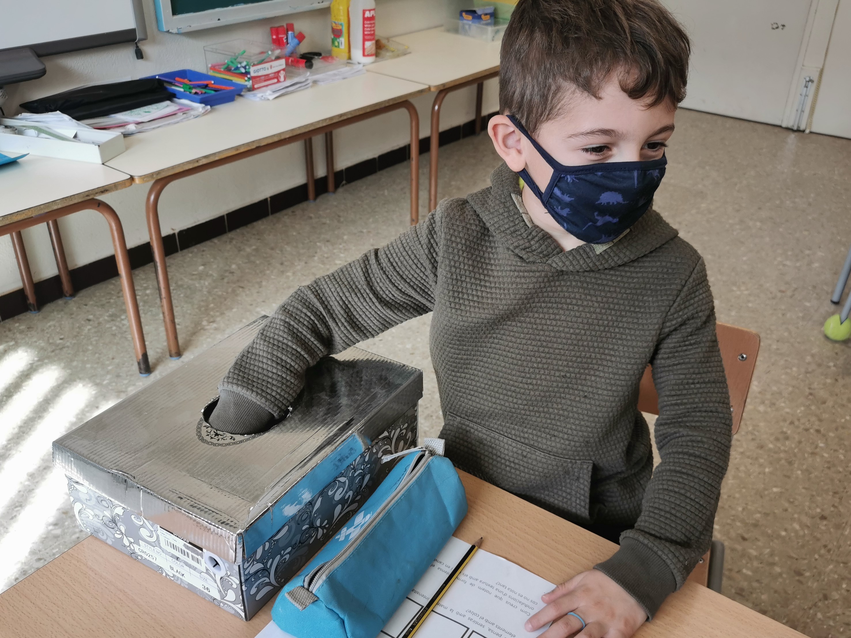 A la classe de 2nA estem treballant els 5 sentits! A la darrera sessió hem experimentat amb el sentit del tacte. Hem ficat la mà a una capsa misteriosa on hi havia 3 elements amb diferents textures que havíem de tocar a veure què sentíem amb el tacte. Després els hi hem posat paraules: rugosa, llisa i suau.