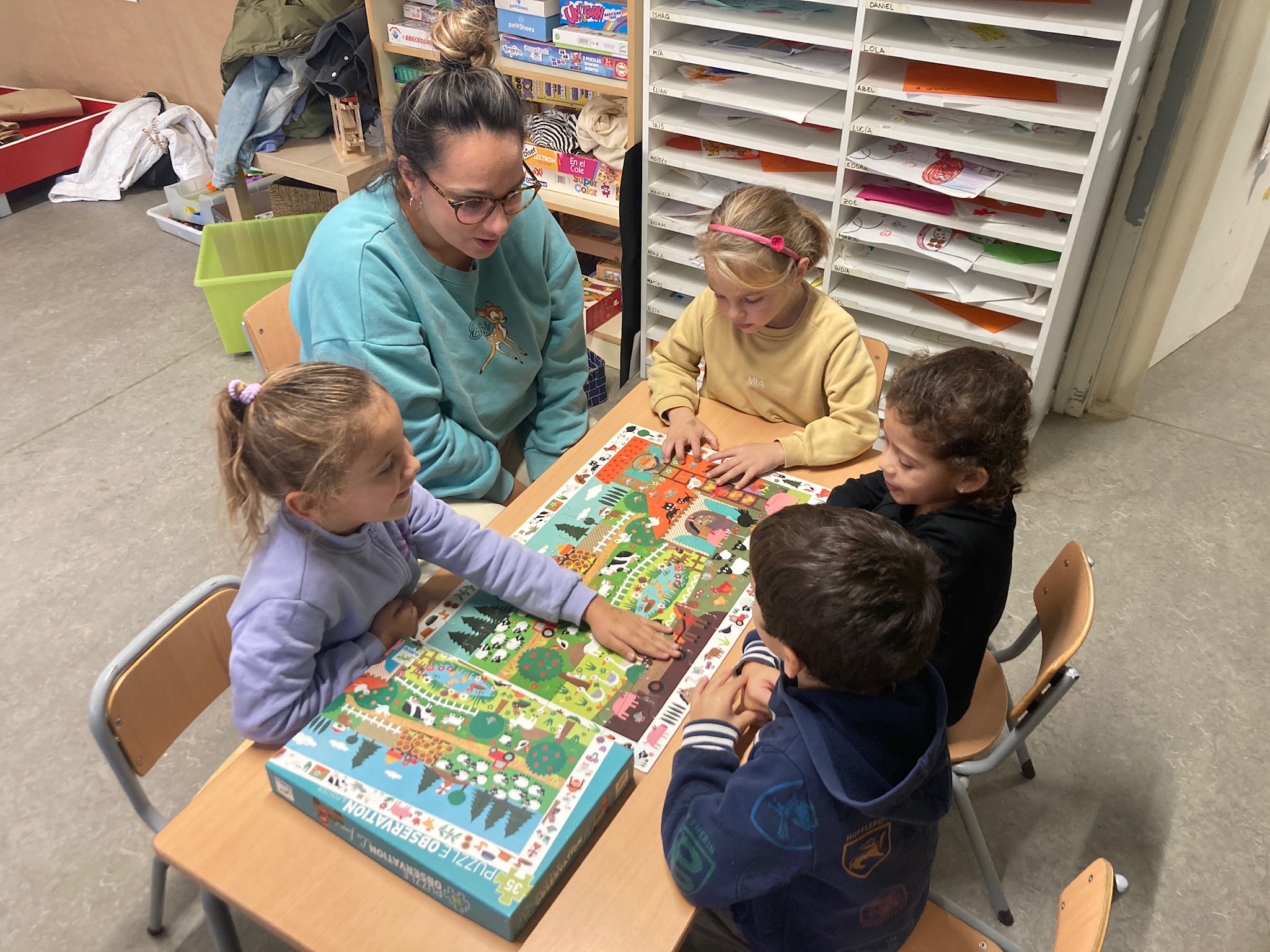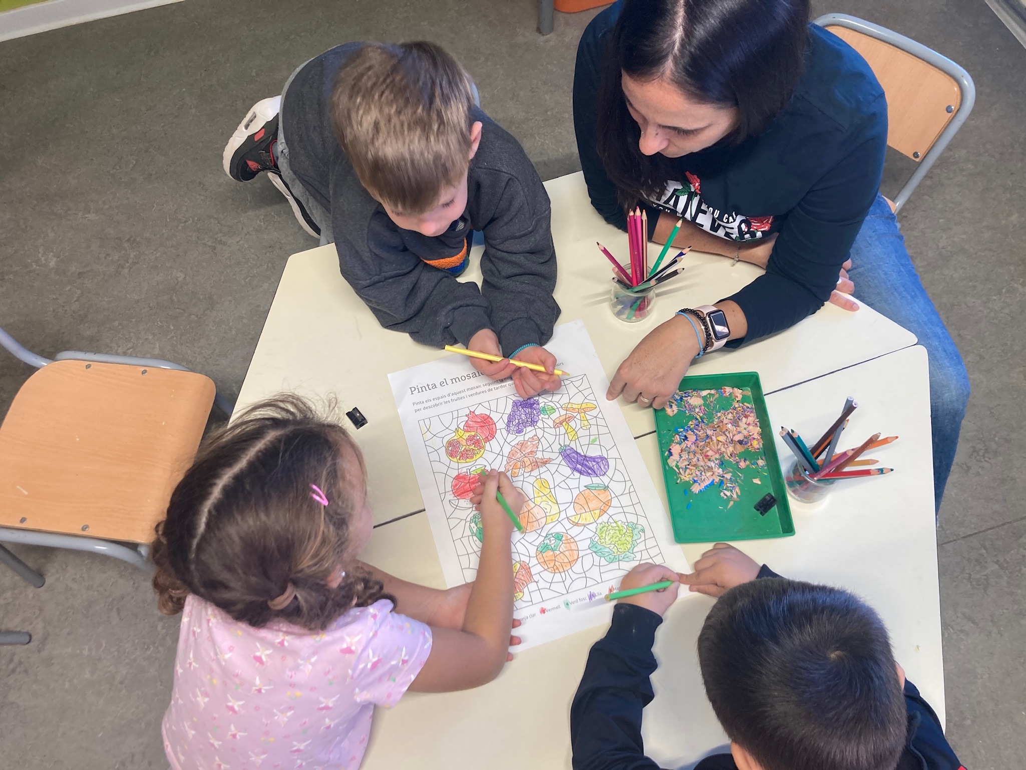 GRUPS INTERACTIUS A INFANTIL Feu un comentari / Per Comunitat Grans 1 / 27 de novembre de 2023 / Petits 1 / Comunitat d'Aprenentatge, Grups interactius, I3 - I4 - I5, Petits En les darreres setmanes hem iniciat una de les prà ctiques d’èxit de les Comunitats d’Aprenentatge més populars entre els petits d’I5 del centre; els Grups Interactius, on les famÃlies voluntà ries hi formen part. Quinzenalment, aquelles persones interessades en acudir a l’aula i compartir les activitats de Llengua o Matemà tiques, es comprometen a participar de manera activa amb el grup classe i dinamitzen cadascuna de les propostes. D’aquesta manera, els infants tenen l’oportunitat de gaudir de les activitats d’aula amb la companyia dels seus éssers estimats i l’entusiasme els ajuda a consolidar els aprenentatges.Â