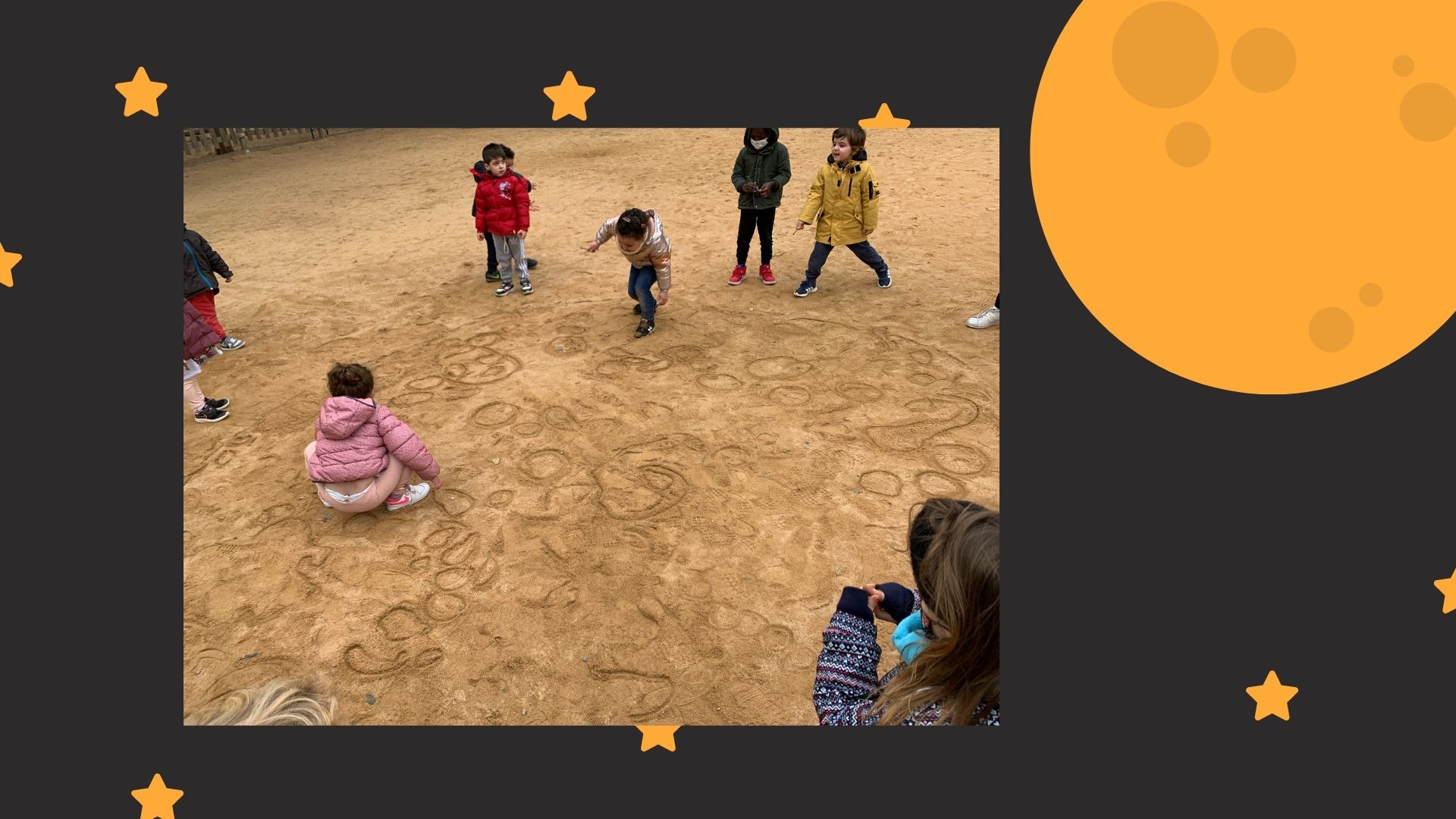 Les/els taurons a partir del conte “De què fa gust la lluna?”, ens hem embarcat en una investigació sobre la lluna. Primer hem descobert quins personatges hi havia al conte i hem tastat la sal i el sucre per saber quin gust podia fer la lluna. A més hem descobert que la lluna té cràters i un matí vam sortir al pati com si fóssim astronautes a buscar elements per fer cràters a la sorra amb el que vam trobar; pedres. També hem experimentat a fer cràters a la pissarra digital i amb la farina. Hem descobert que la lluna té diferents fases lunars. Com també hem jugat a barrejar sucre amb pintura per fer llunetes petitones. Hem jugat a racons amb les lletres, els números, el bingo, a dibuixar els personatges del conte, a la lluna i a escriure lletres a les pissarres petitones… I per últim hem fet la nostra pròpia lluna.