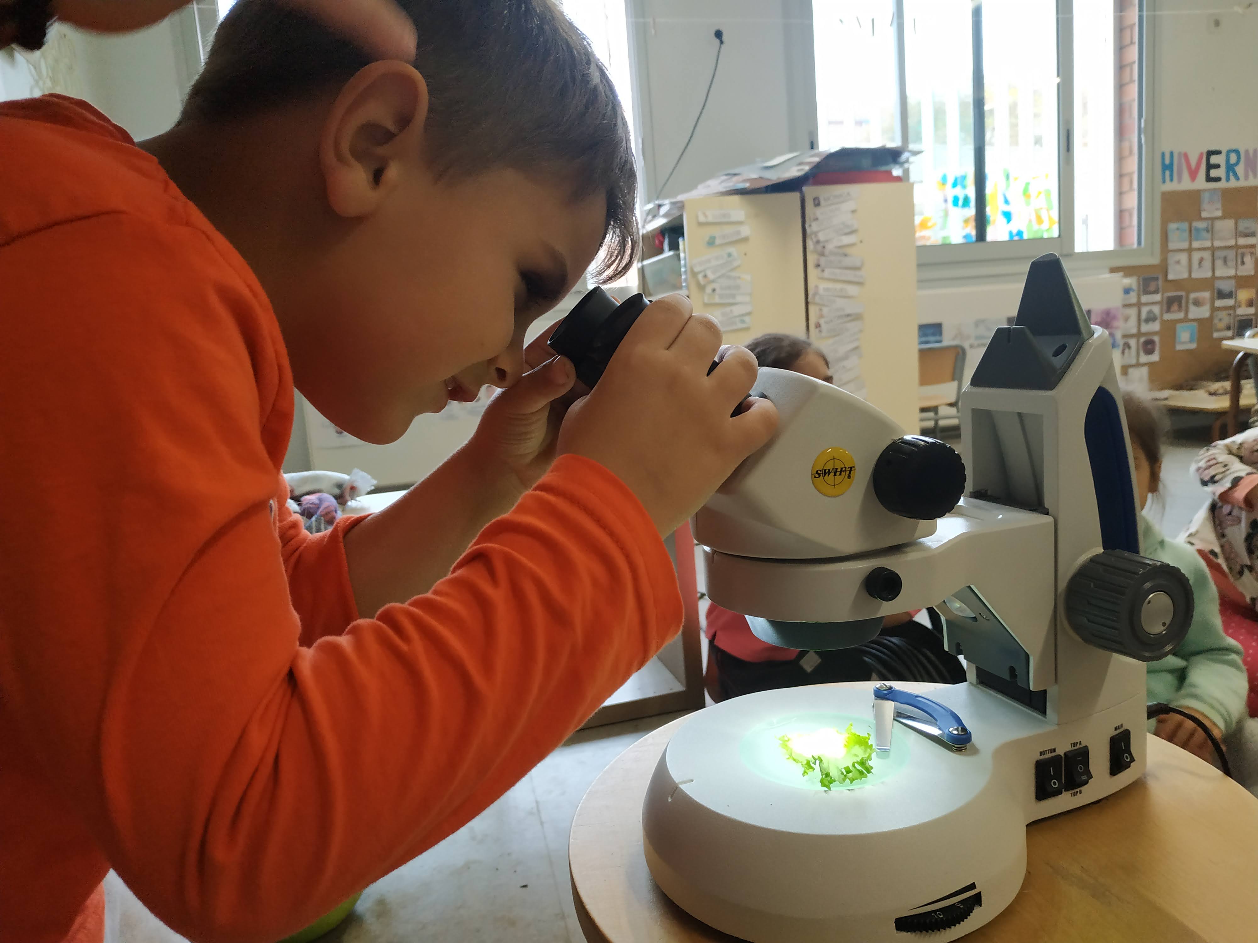 A més a més, hem portat un microscopi del laboratori per observar de ben a prop les fulles i el cuc que hem trobat.