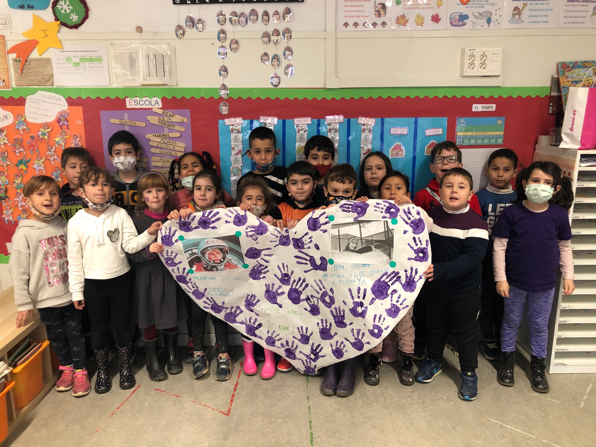 A P5 treballem el dia de la dona treballadora a partir del nostre projecte d’aula. A P5A amb la primera dona que va viatjar a l’espai, la Valentina Tereshkova i a P5B amb la primera dona pilot, la Pepa Colomer.