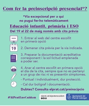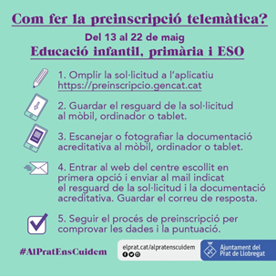 Us informem que el període de preinscripció serà del 13 al 22 de maig de forma telemàtica.