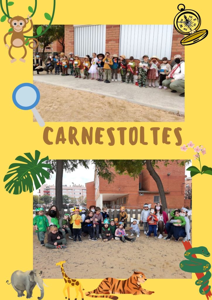 El divendres de Carnestoltes va ser molt especial per les tortugues i els taurons/es. Arrel del projecte de la Jungla que estem inmerses totes dues classe va sorgir la idea de les nostres disfresses. Aquest projecte neix d’una proposta d’activitat per part del Teatre de L’Artesà per les diverses escoles del municipi, tot seguint un intinerari