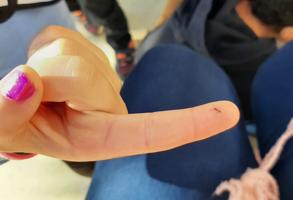 Avui les nenes i els nens de la classe de les gambes, ens hem trobat una sorpressa a l’aula! Hem descobert una capsa on dintre hi havia un formiguer amb formigues de veritat. Aquest formiguer tenia dos parts, un rectangle amb un forat per respirar, un altre forat per introduir aliment, i una altra part