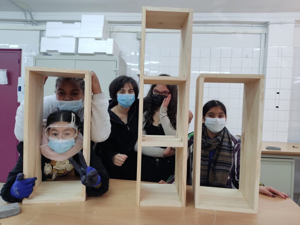 Paral·lelament, des de l’àrea de tecnologia, hem assumit el repte del disseny i la construcció del moble que ha de servir d’estanteria per a la biblioteca de l’aula.