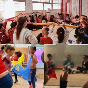 Sembla evident l’efecte que genera en nosaltres la música, capaç de produir plaer, d’activar la motricitat, de potenciar la creativitat, de suscitar i despertar emocions en nosaltres i, fins i tot, d’agrupar-nos tot creant sinergies positives. És per tot això que a les sessions de música nodrim cadascuna d’aquestes possibilitats amb instruments i materials diversos destinats a la percussió, al moviment i la cooperació. Aquest any ens hem introduït a la cinta elàstica cooperativa; una cinta amb infinitat de possibilitats de moviment per treballar els contrastos (dins-fora, amunt-avall, agut-greu, lent-ràpid…), la pulsació i, també, el fraseig. La cinta ens connecta enèrgicament al grup, construeix mirades conjuntes, allibera tensions acumulades, incrementa en nosaltres les ganes d’explorar a través del moviment i ens obre les portes a la creativitat, on juguem a transportar-nos a indrets imaginaris i a crear formes complexes i divertides sempre acompanyats de música.
