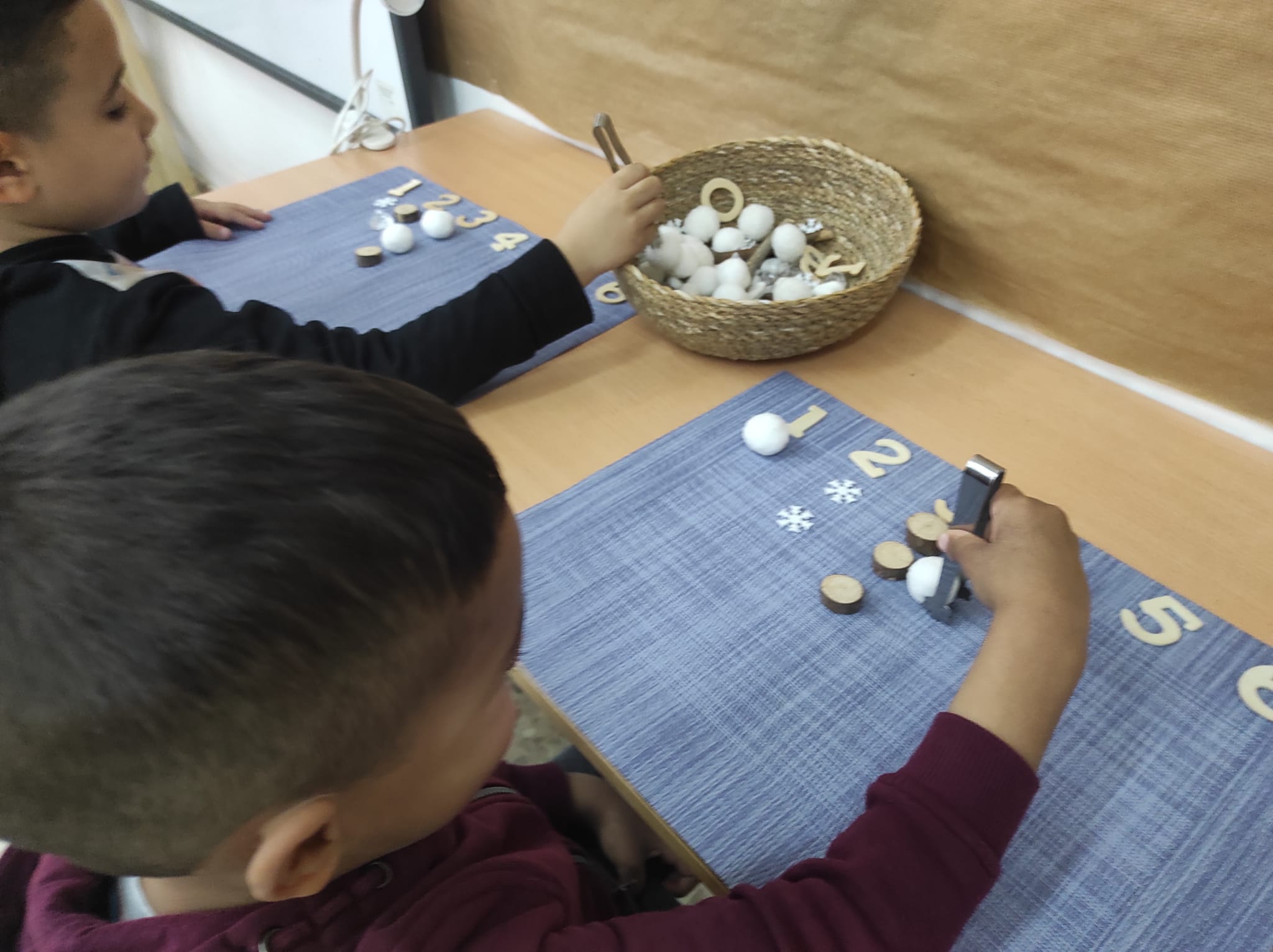 Els nens i nenes de la comunitat de petits aprenem matemàtiques a través del joc, l’experimentació i la manipulació. Amb les propostes vivencials que els oferim, els infant s’apropen al càlcul, la mesura, la geometria…provocant curiositat perquè siguin ells els protagonistes dels seu propi aprenentatge. A partir del treball manipulatiu de les matemàtiques s’aconsegueix que els alumnes s’interessin pel que estan aprenent, que gaudeixin i que els aprenentatges siguin més significatius. D’aquesta manera es pretén deixar de banda l’aprenentatge abstracte el qual no dóna peu a la creativitat, l’autocorrecció ni el treball autònom dels infants.