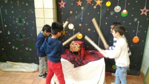 Els nens i nenes de 2n col·laborem en la construcció dels nostres dimonis.