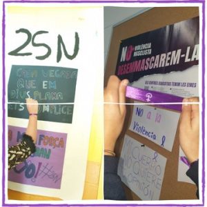 25/11/20Reivindiquem el dia de la No Violència Masclista amb consignes, eslògans, polseres liles…