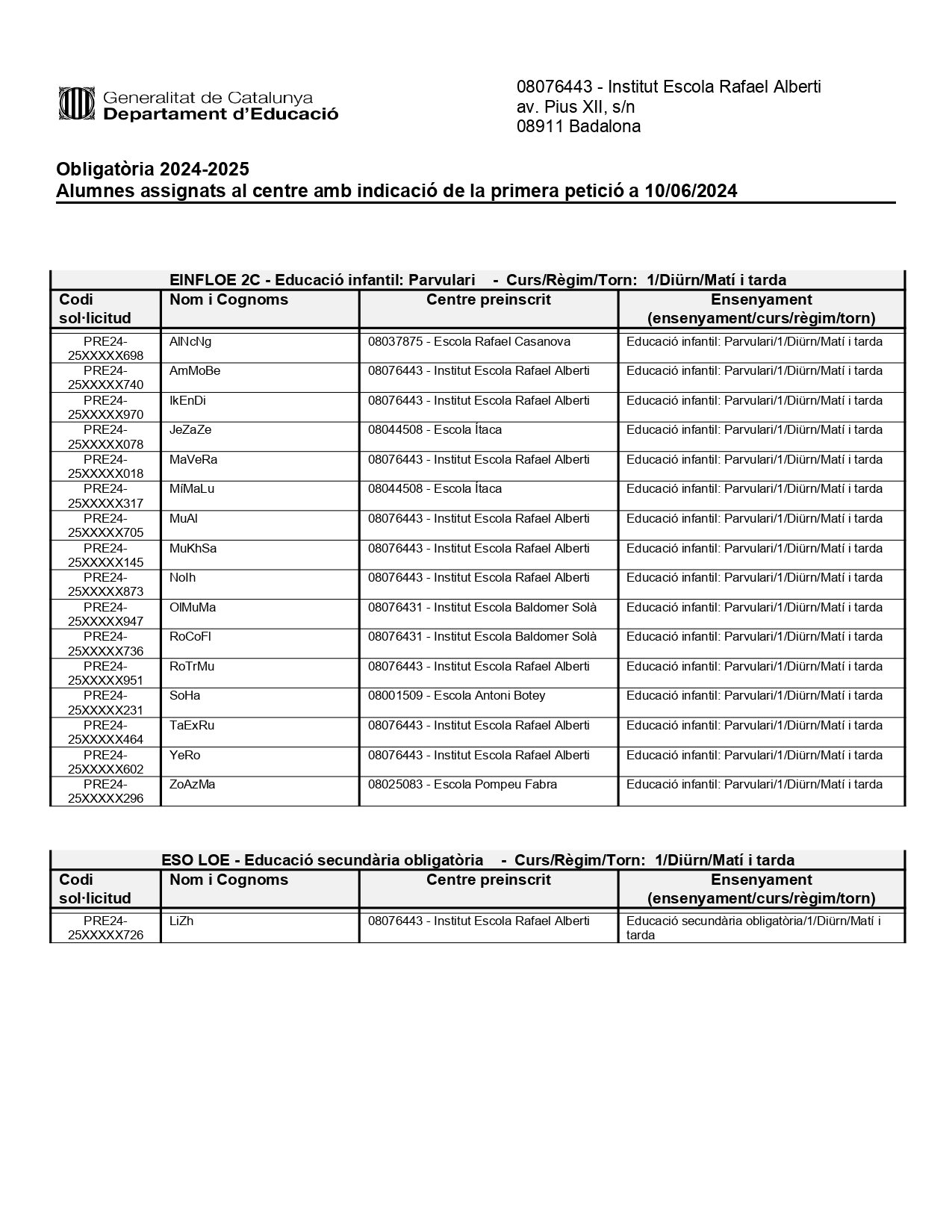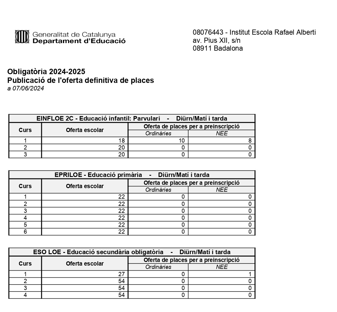 Equip de personal de l’Institut Escola Rafael Alberti