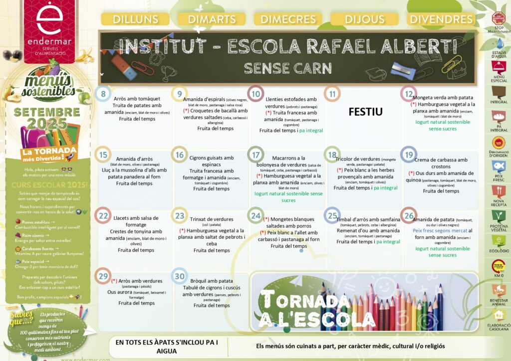 El servei de menjador començarà a funcionar a partir del dia 6 de setembre.