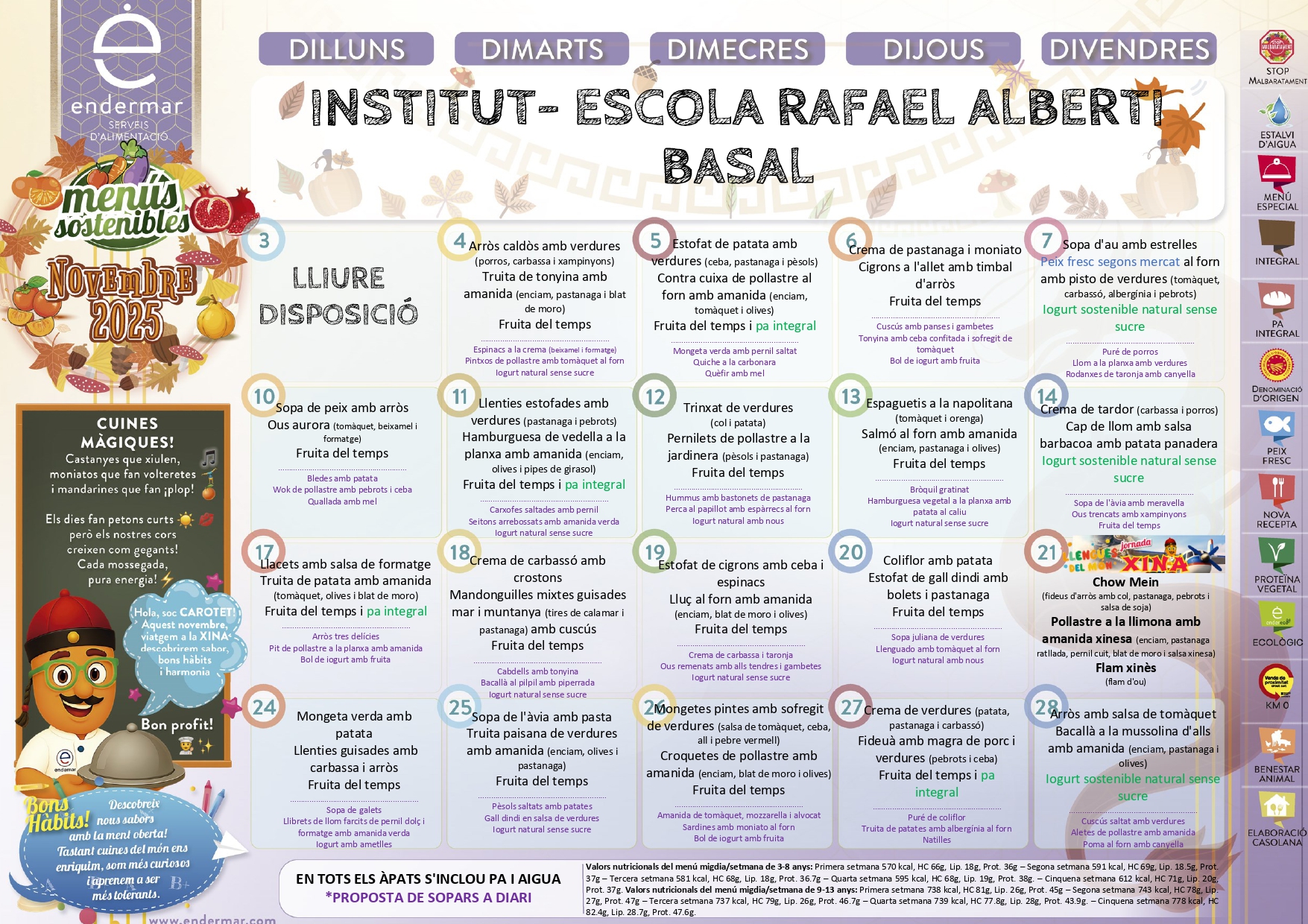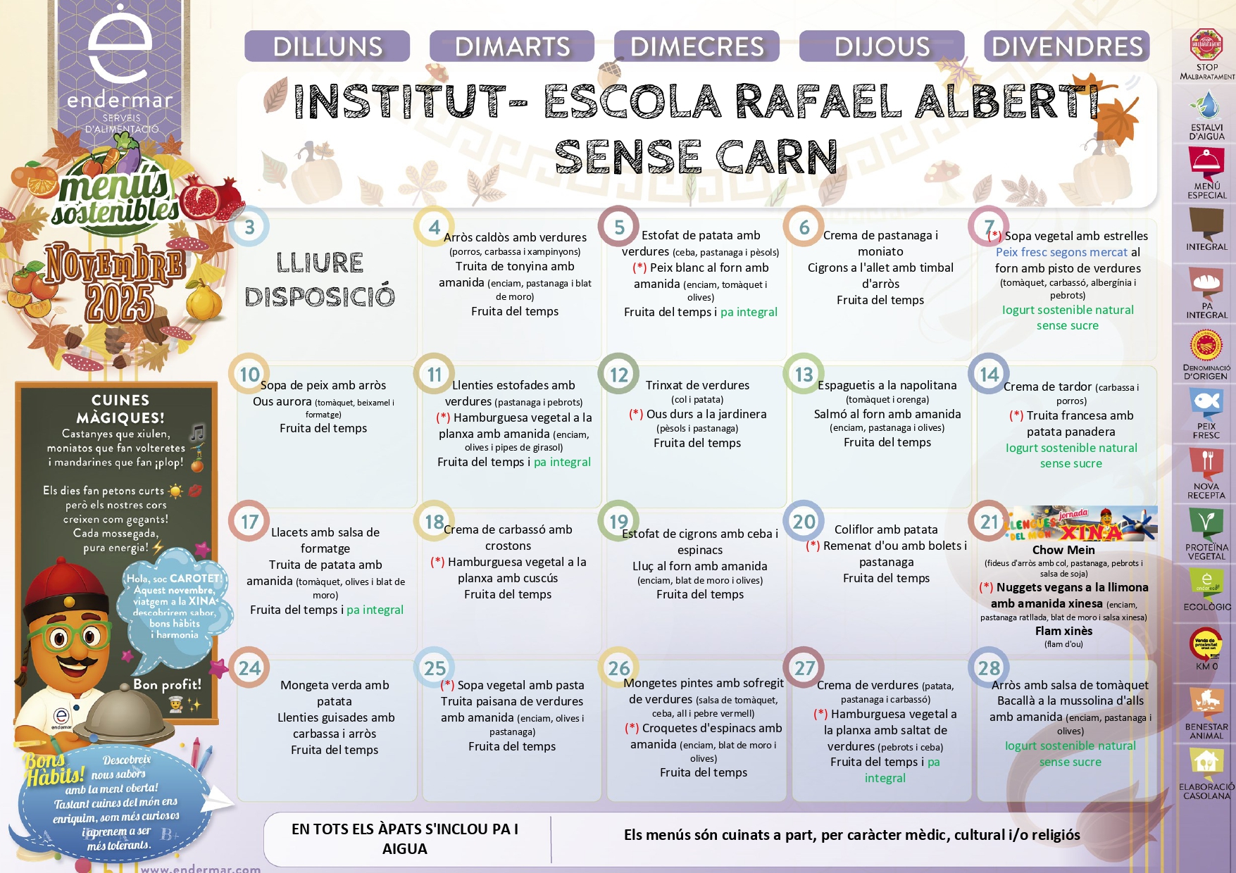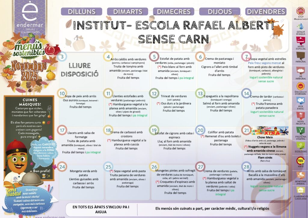 No es pot garantir el servei de menjador a aquelles persones que arriben després d’aquesta hora sense avisar.