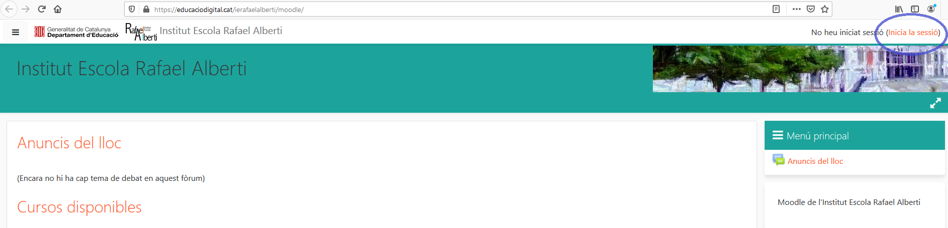 2. A la pàgina de Moodle clica a “Inicia la sessió”