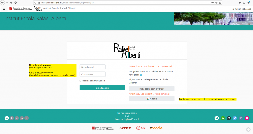 16/01/21 Per a entrar als teus cursos a l’espai Moodle de l’Institut Escola Rafael Alberti