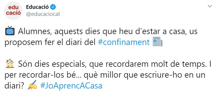 La nostra proposta d’avui ve del departament d’educació, és per a tot el temps que duri el confinament.