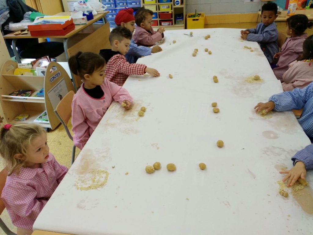 PANELLETS P3 Mario15/11/17 ?????A P3 HEM FET PANELLETS!!!????? ?DE COCO I D’AMETLLA!!? HA VINGUT LA CASTANYERA I ENS HA DONAT CASTANYES!!! ?????????