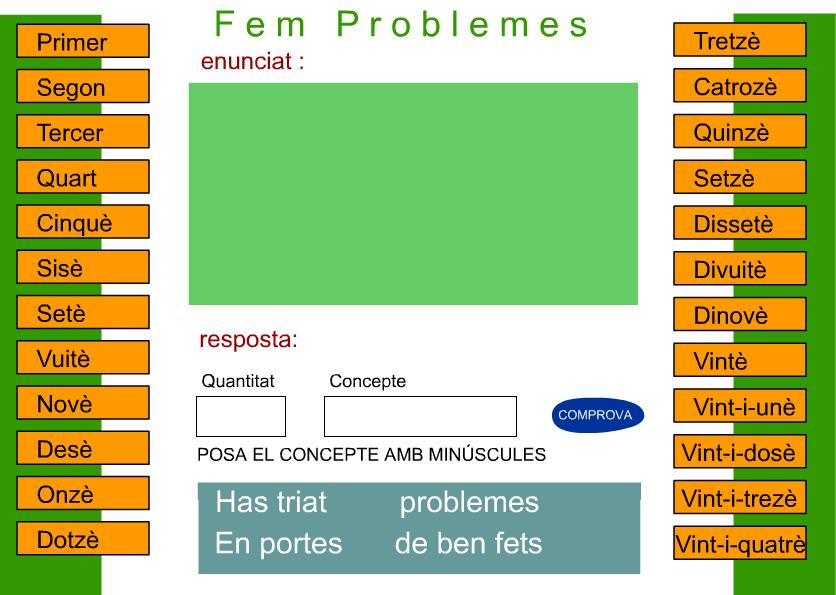 Practiquem problemes matemàtics admin09/01/12 http://ntic.educacion.es/w3//eos/MaterialesEducativos/mem2007/cajon_sastre/acmates/problemes/TERCER/problemes4.swf
