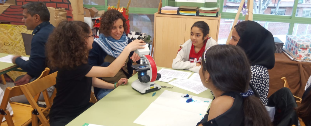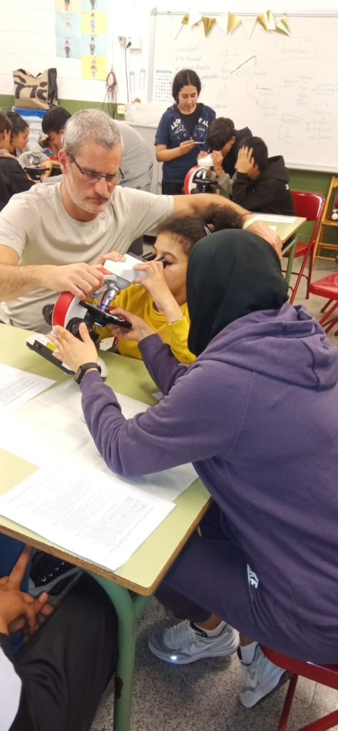 L’alumnat de 1r B va continuar amb el seu dia a dia, on dins de l’àmbit STEM, van seguir amb una pràctica de laboratori. Aquesta, va consistir en veure les cèl·lules epitelials de la ceba a partir de solució de blau de metilè i donar sentit i coherència a l’estudi s que han estat fent al llarg d’aquest trimestre sobre les mateixes. A més a més, l’alumnat que va voler va preparar una petita ponència sobre projectes i treballs que han fet al llarg de l’any. Va ser un moment ideal per donar visibilitat als projectes que realitzem i donar valor a la feina feta, així com conèixer al professorat que imparteix cadascuna de les àrees i àmbits i quin enfocament competencial hi ha al darrere.