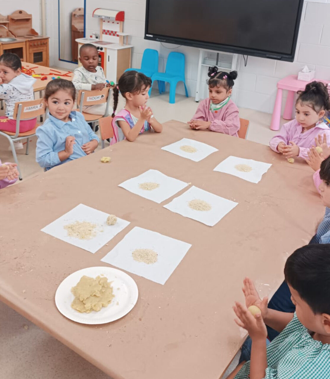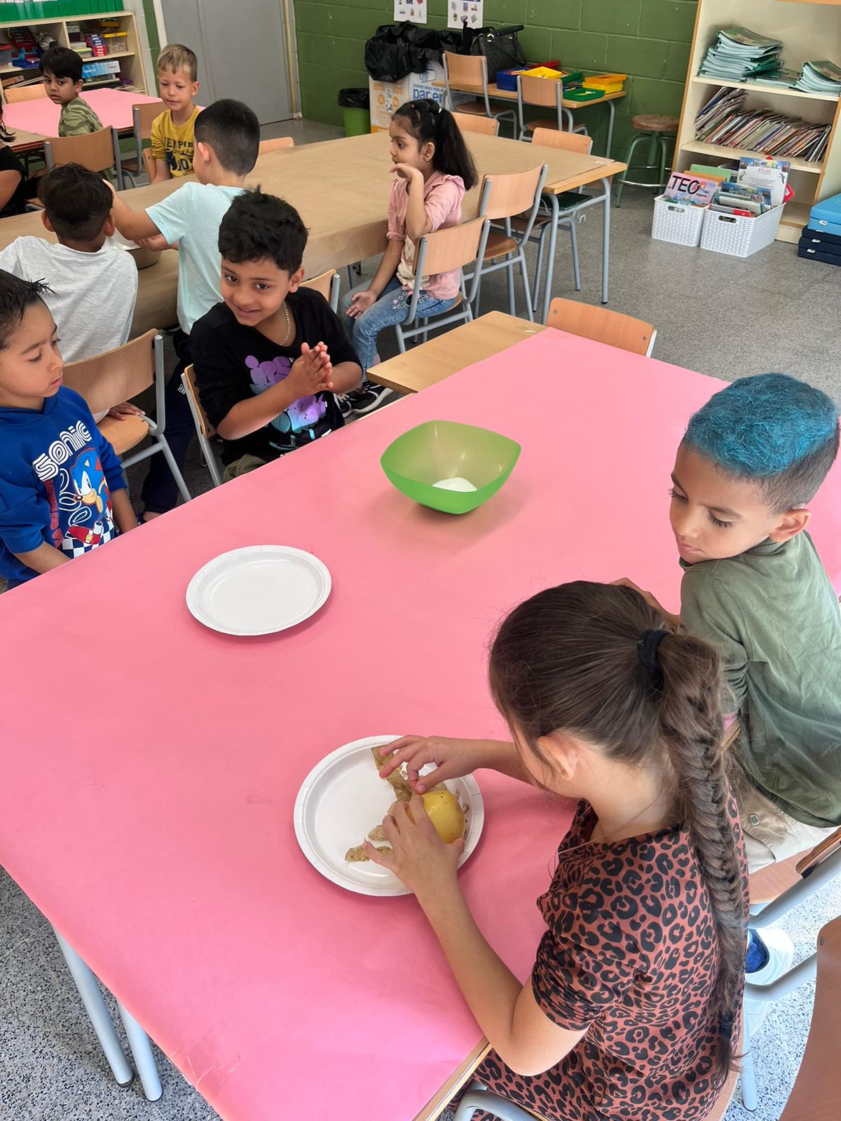 L’alumnat d’infantil va començar la jornada amb l’elaboració de panellets, que van fer seguint la recepta que prèviament havien treballat. Tot seguit van sortir al pati on els van anar a visitar les Castanyeres de l’escola, que els hi van demanar un parell de cançons a canvi d’unes castanyes acabades de torrar que estaven boníssimes!