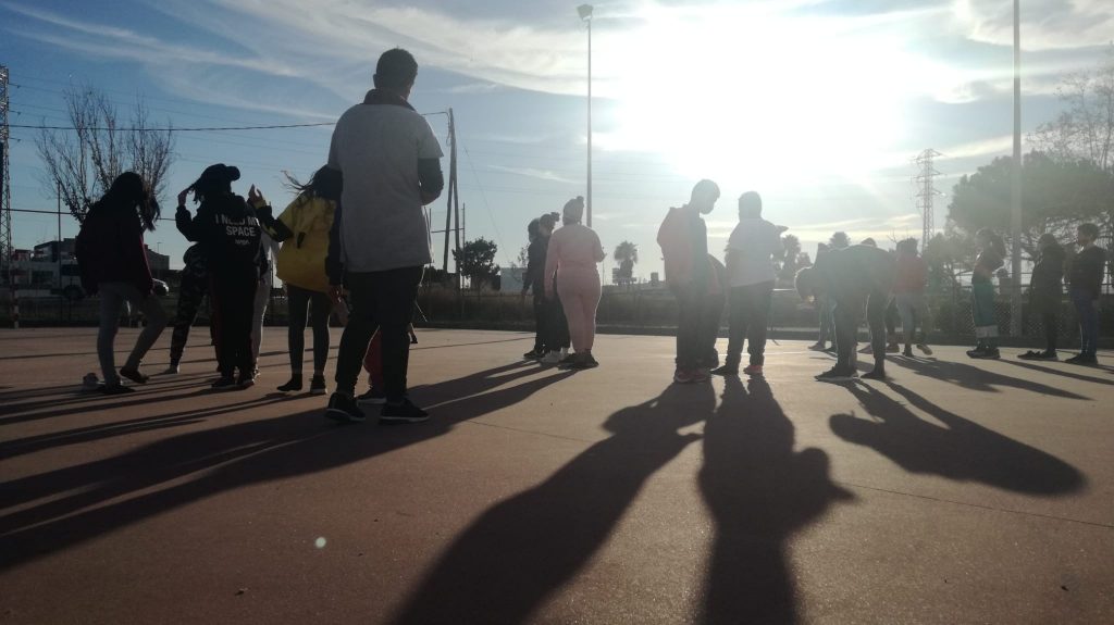 Early morning stretches, to get ready for the Olympic games in English ahead of us. We tested our skills at shoe throwing, baseball and a music game. We are enjoying our stay at Xanascat hostel in Deltebre.