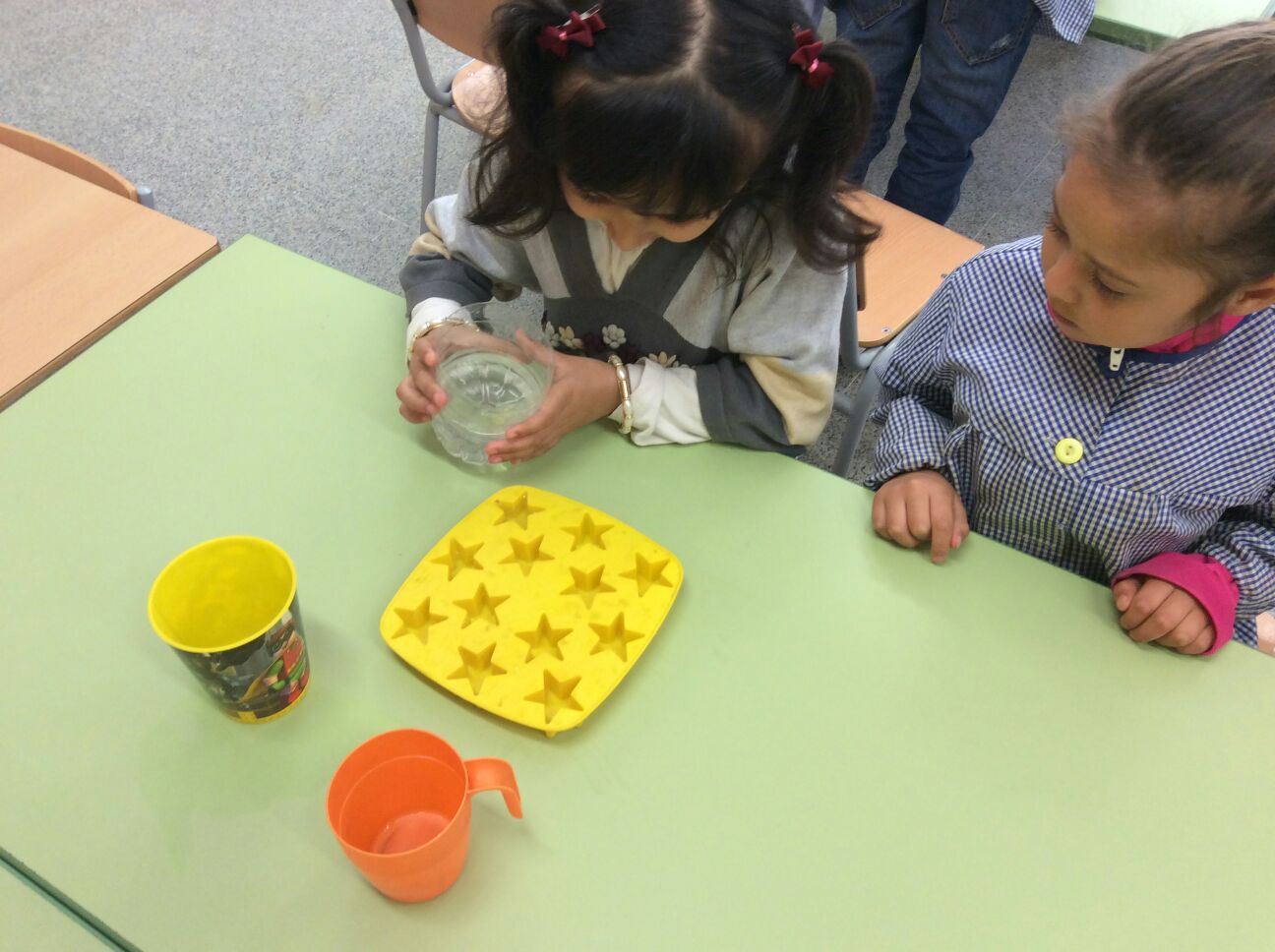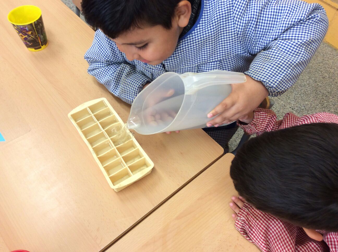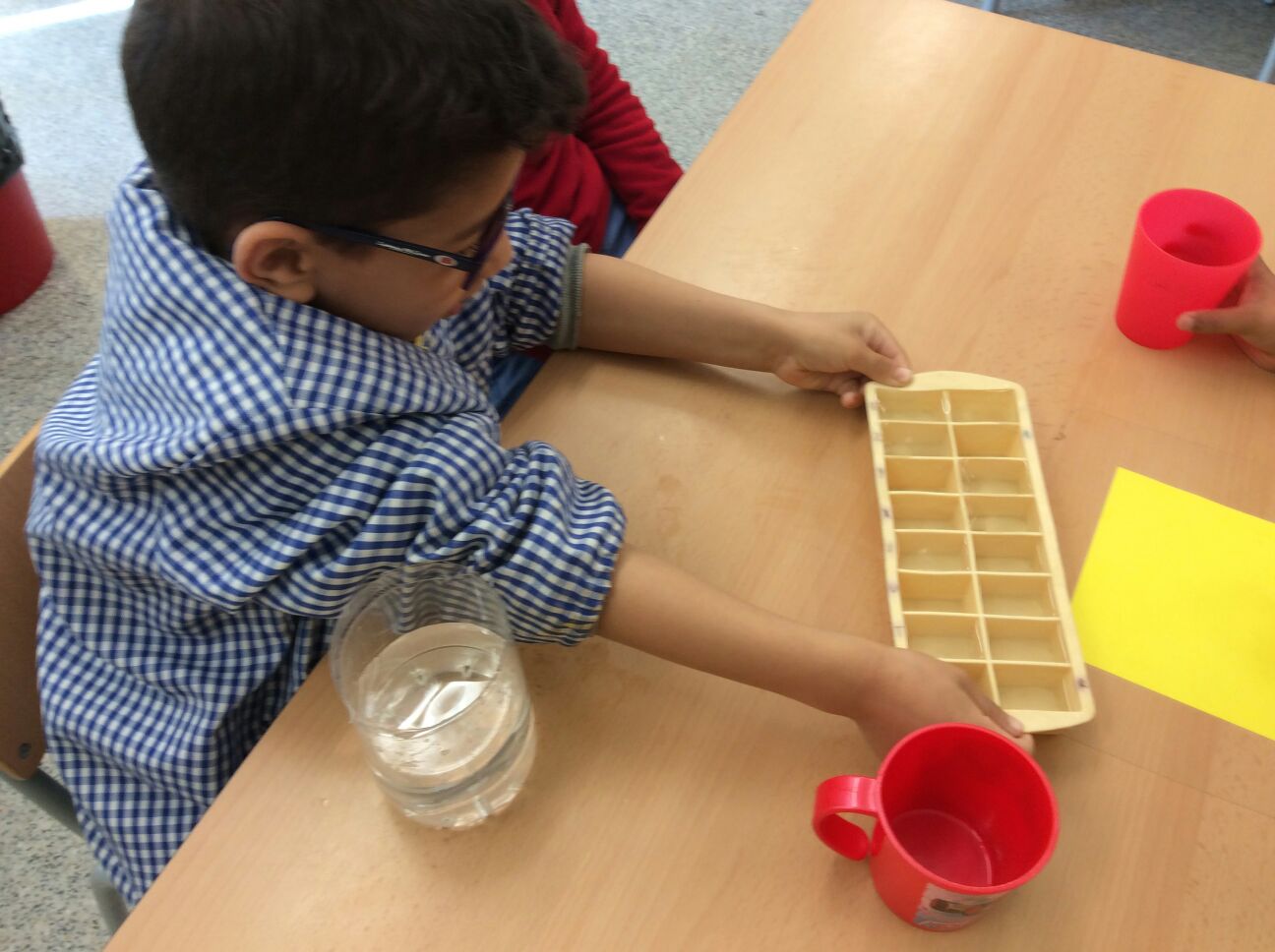 Hem posat l’aigua a la glaçonera i la portem al congelador de la nevera. Ens preguntem que passarà…………