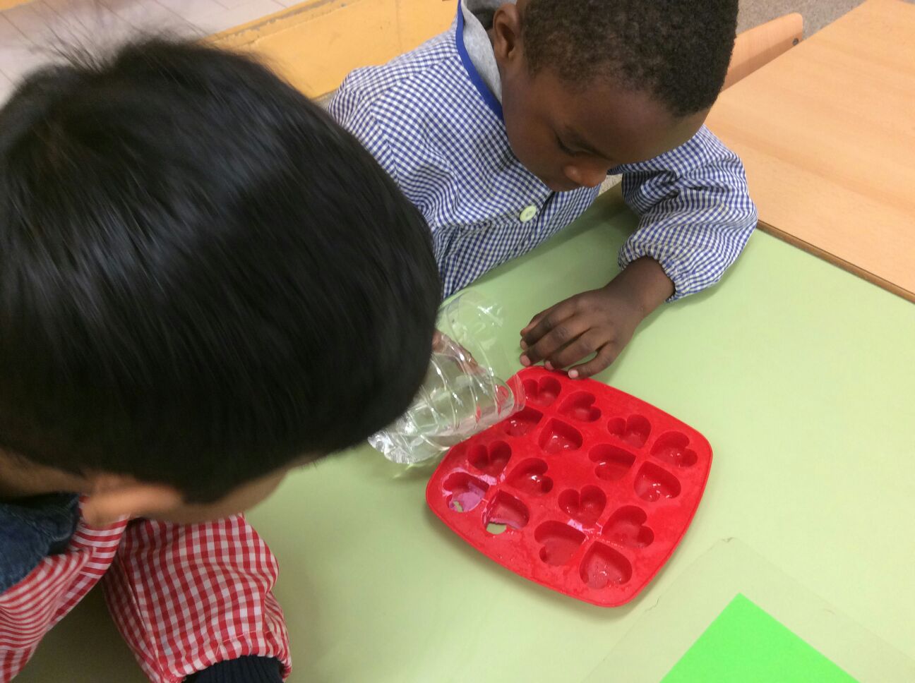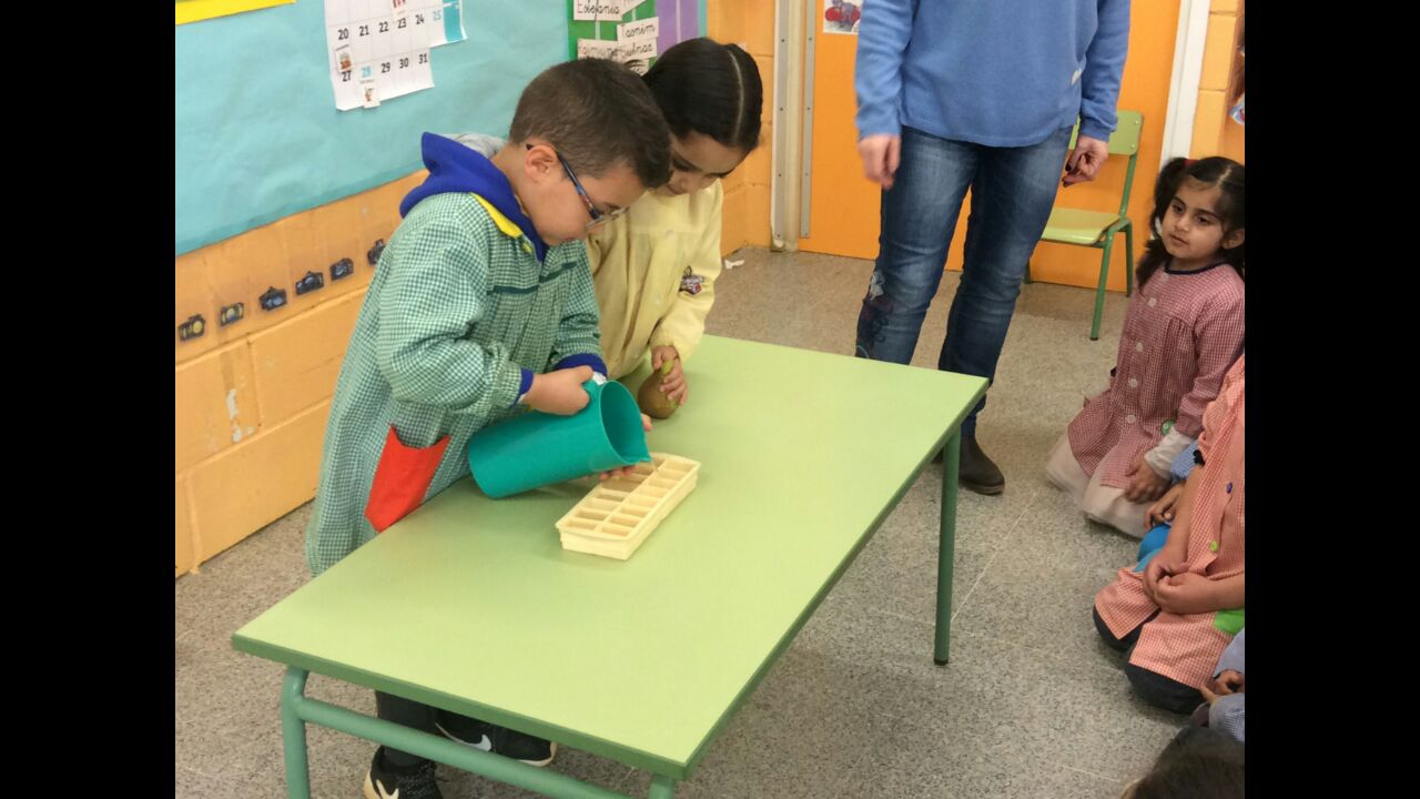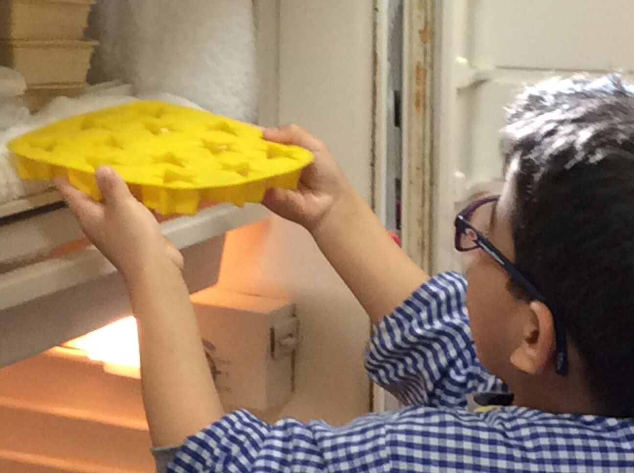 Hem posat l’aigua a la glaçonera i la portem al congelador de la nevera. Ens preguntem que passarà…………