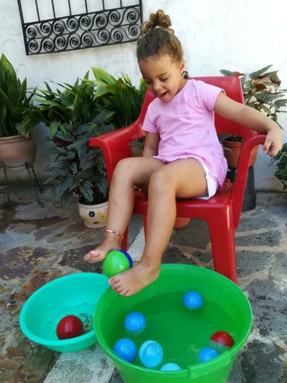 - Proveu de separar les pilotes per colors, per exemple: a la safata de la dreta les pilotes vermelles i a l’esquerra les blaves.