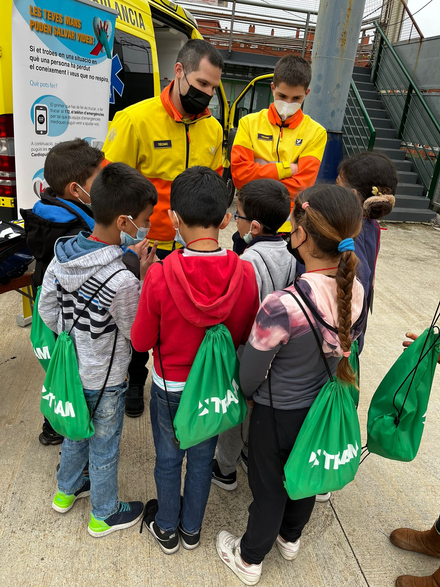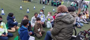 Al camp de futbol hi havia diverses activitats que els nens i nenes havien de realitzar; van descobrir com és anar en cadira de rodes, com és l’interior d’una ambulància, caminar amb obstacles amb problemes visuals gràcies a unes ulleres que simulaven una visió borrosa; així com  també jocs en què havien de conèixer les normes de circulació. A més, a cada estació els van fer un obsequi.