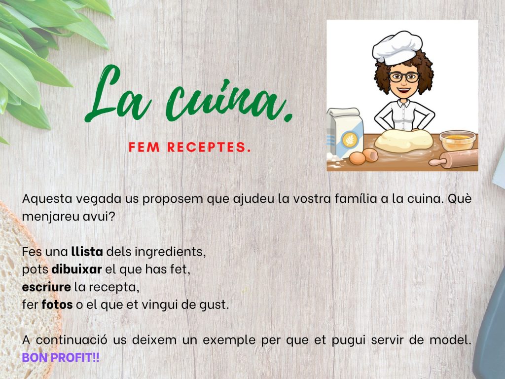 Pots penjar al Padlet les fotos i dibuixos de com ha quedat la teva recepta per compartir-ho amb nosaltres.