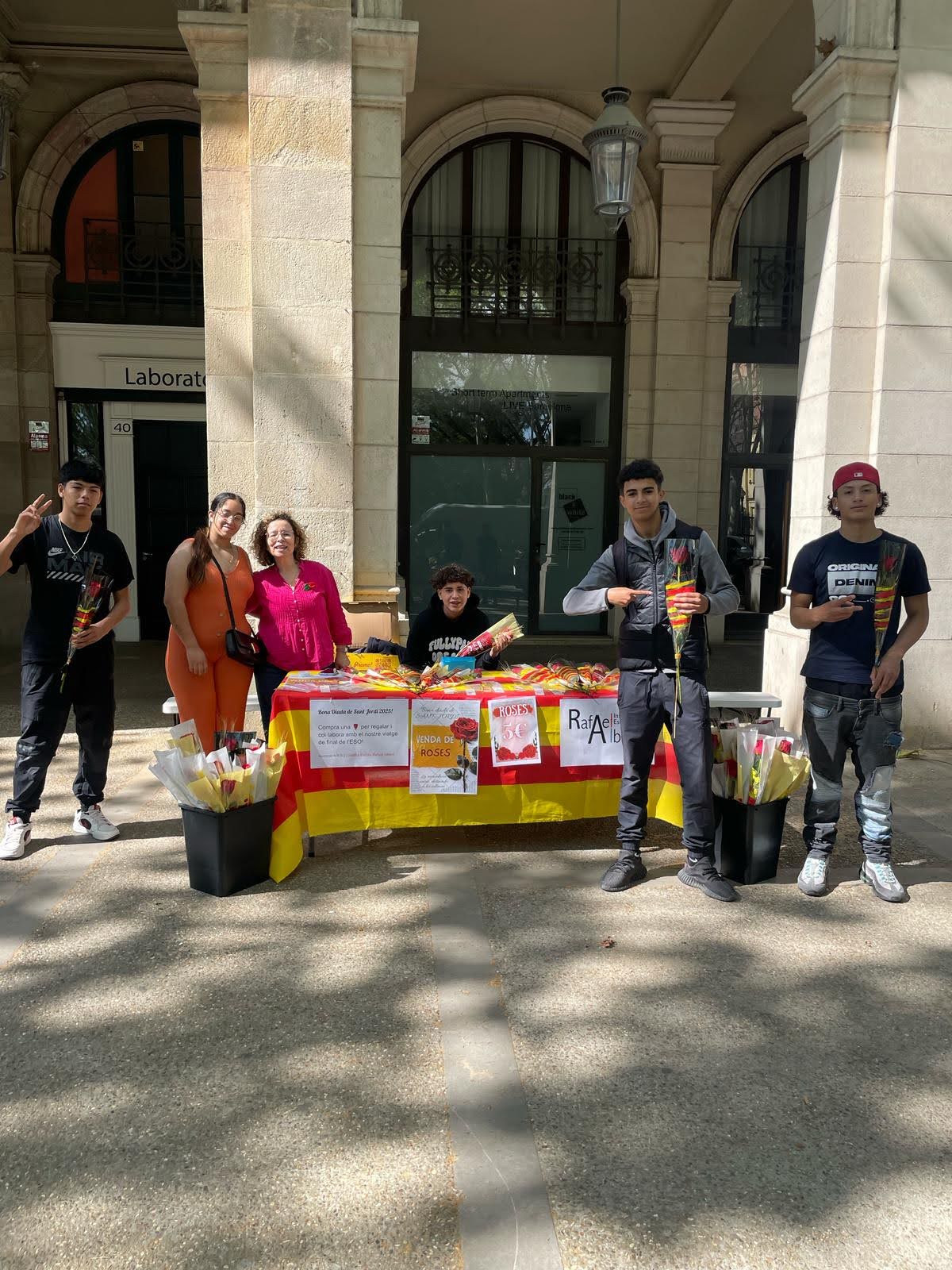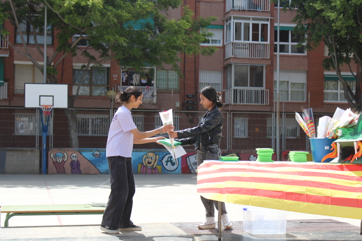 Al mateix temps, l’alumnat de 4t d’ESO van organitzar-se durant tota la jornada amb dues paradetes de roses situades al Parc de la Ciutadella i l’Arc del Triomf de Barcelona. Tots els beneficis obtinguts aniran destinats de forma íntegra a costejar el viatge de final d’etapa de la secundària.