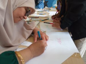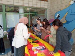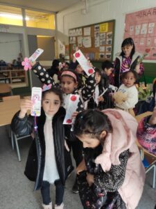 D’altra banda, l’alumnat de primària va realitzar diferents tallers amb la temàtica del dia, alguns es duien a terme a l’aula i d’altres als espais exteriors del centre, com la realització de punts de llibre en diferents idiomes. Aquesta va ser una de les primeres propostes que la recent constituïda associació de famílies de l’alumnat ha realitzat al centre, posant de manifest la importància de la multiculturalitat i el respecte envers la diversitat de llengües i cultures. Així mateix, part de l’alumnat cicle superior de primària va fer una sortida pel centre de Sant Adrià per conèixer i viure aquesta festa en primera persona.