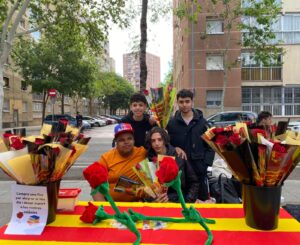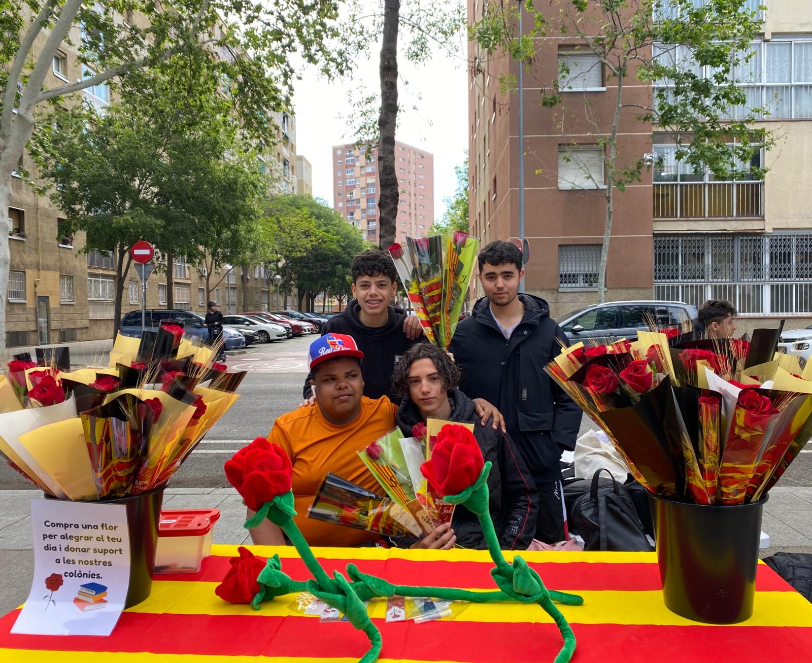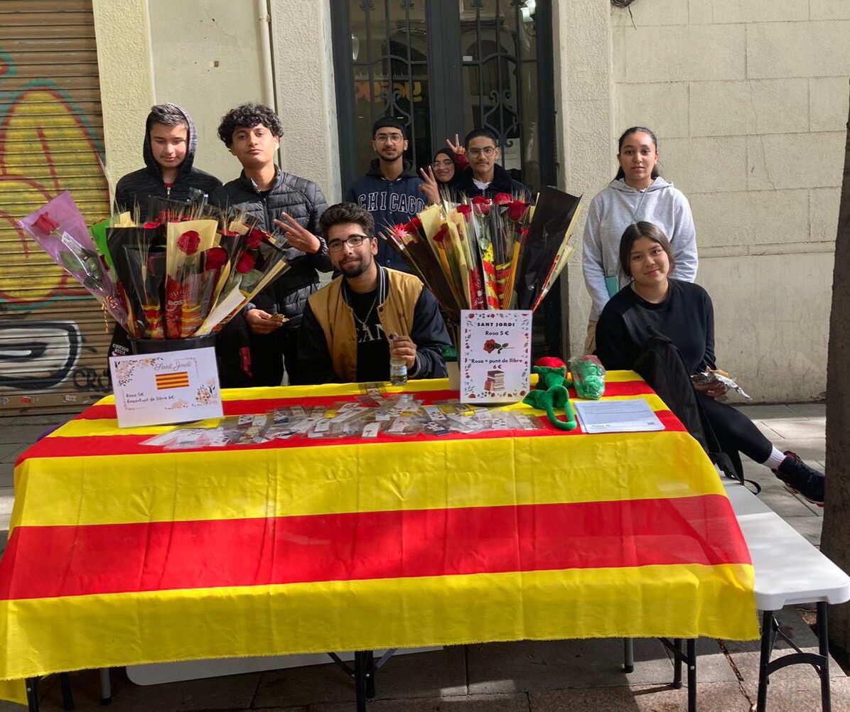 L’alumnat de 4t de l’ESO va tenir l’oportunitat de viure la celebració de Sant Jordi als carrers, venent roses als barris de Sant Martí i El Clot, on tota la recaptació anirà destinada a pagar les seves colònies de final de curs.