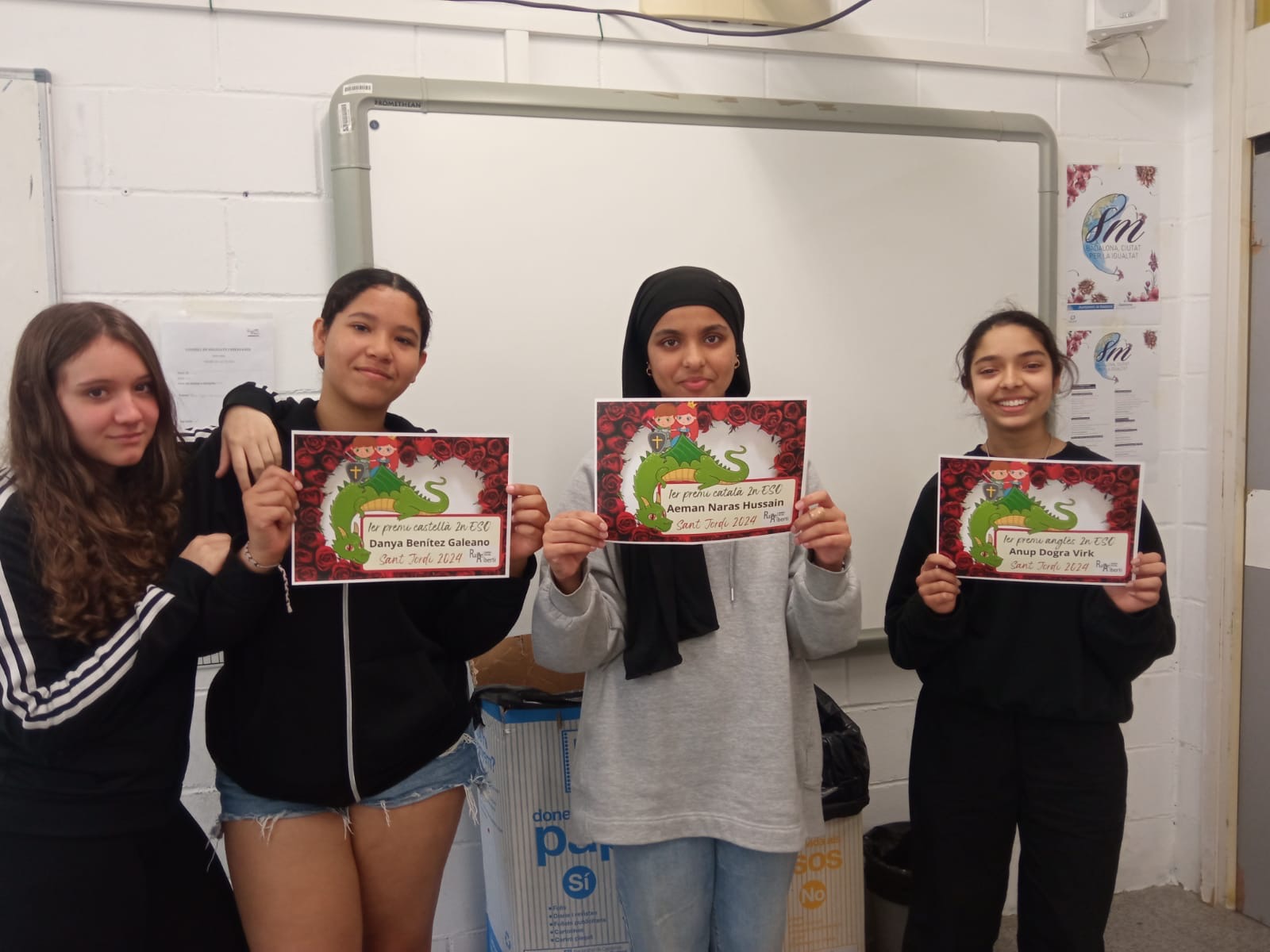 Entre les activitats de l’alumnat d’ESO cal nomenar aquelles que van compartir amb la resta de cicles, com el teatre de titelles que van preparar a l’optativa de teatre de 1r de l’ESO i que van baixar a representar als infants d’infantil, que van gaudir molt de les històries boges de St. Jordi que els hi havien preparat. Per la seva part, els companys de 3r de l’ESO, van fer un recital de poemes de Miquel Martí i Pol a l’alumnat de 5è i 6è de primària en la tarda del dimarts.