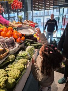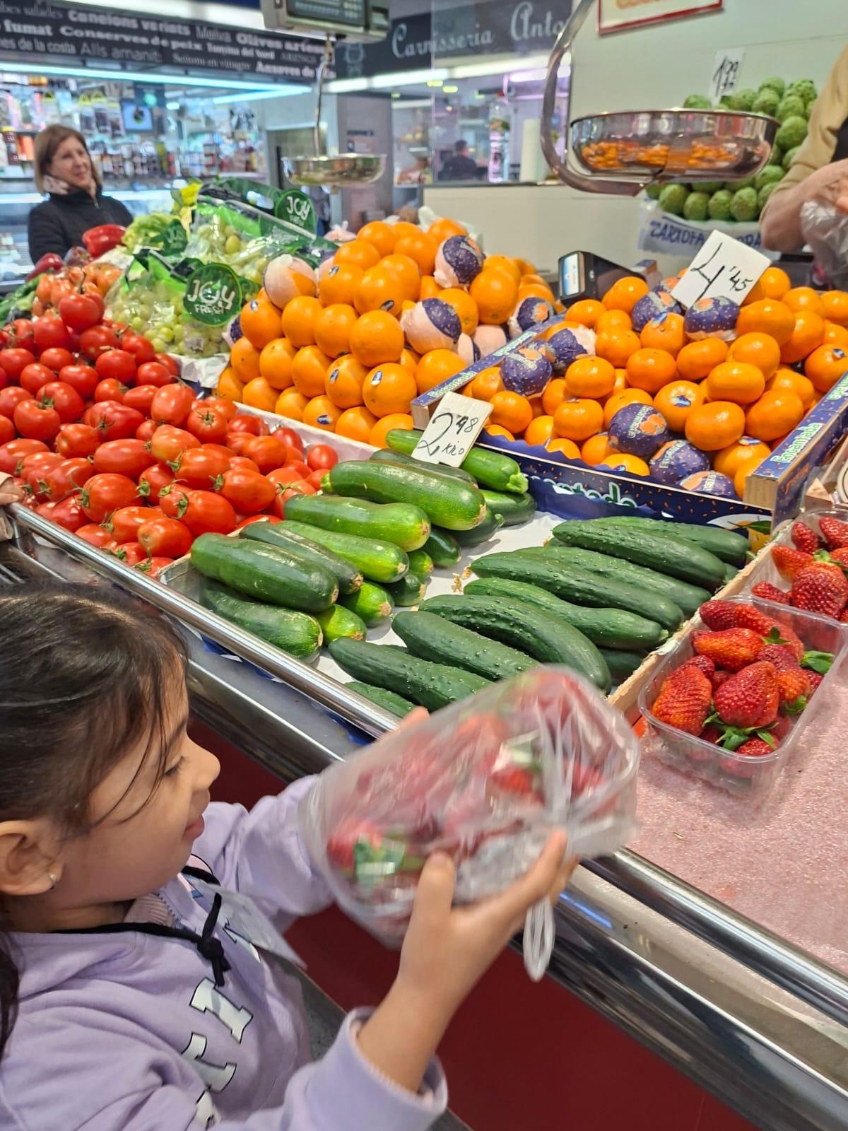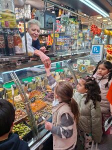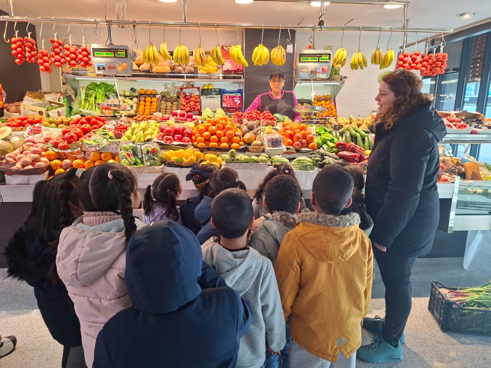 Per tal de fer aquest aprenentatge encara més significatiu, l’alumnat ha realitzat una sortida al mercat de Sant Adrià. Durant la visita han pogut observar de prop les diferents parades i descobrir quins aliments es venen a cada botiga. També han tingut l’oportunitat de parlar amb els botiguers i botigueres i veure com es compren els productes del dia a dia.