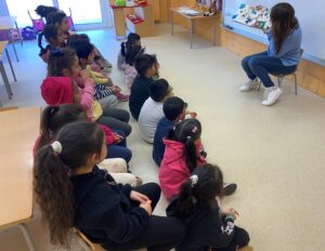 També aprofitem per iniciar-nos en les primeres converses sobre literatura, fent preguntes a l’alumnat sobre el conte que hem llegit: què els hi ha agradat, o què no, si hi ha alguna cosa que els ha espantat, o fet riure. En alguns casos també es pot parlar sobre què pensen que passarà veient la portada o llegint el títol, què ens expliquen les il·lustracions, etc. afavorint així a la formulació d’hipòtesi i al desenvolupament de la imaginació.