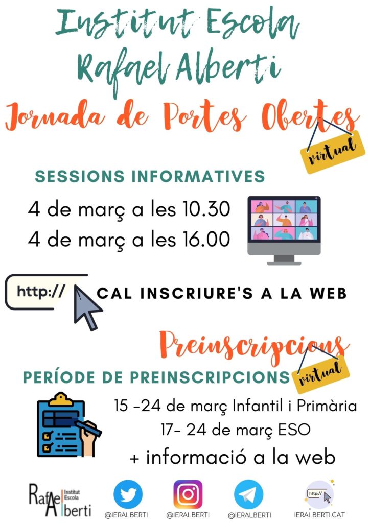Aquest any la jornada de portes obertes de l’Institut Escola serà el dijous 4 de març en format virtual per videotrucada.