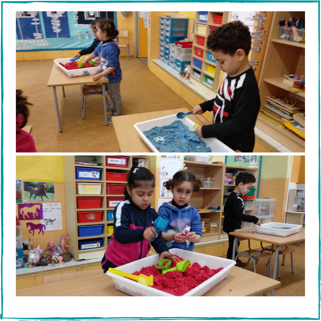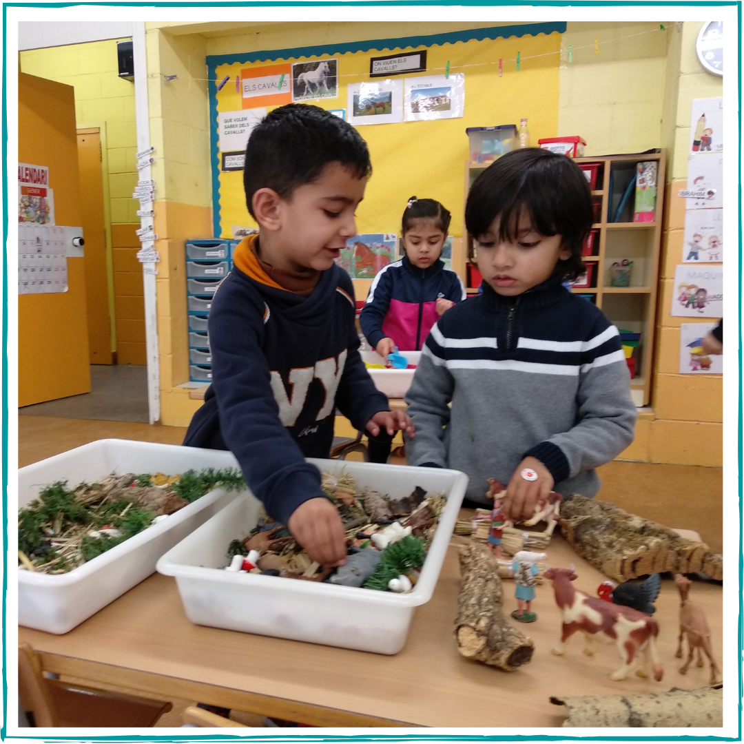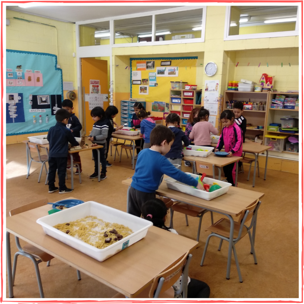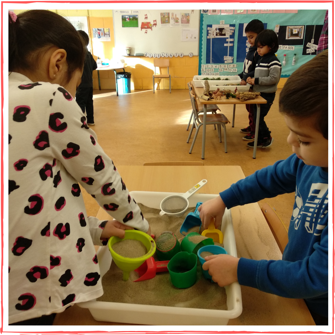 A P4, la classe dels cavalls, els divendres al matí fem experimentació. Sobretot ens interessa continuar el treball iniciat a P3, amb l’objectiu de manipular, experimentar i investigar, gaudint d’aquestes activitats.Tanmateix conèixer diferents materials i textures, experimentant amb la seva manipulació i el plaer sensorial que aporta cadascun. També iniciem conceptes com tou/dur, ple/buit.