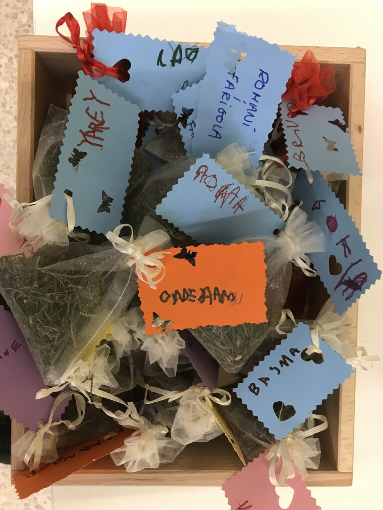 Hola famílies de P4! Com ja sabeu les classes de les Balenes i dels Cavallets de mar van fer l’altre dia unes bossetes d’olor amb herbes aromàtiques. Vam portar a l’escola romaní i farigola i vam posar en marxa els nostres sentits. En rotllana vam mirar, olorar i tocar les plantes, quina bona olor que